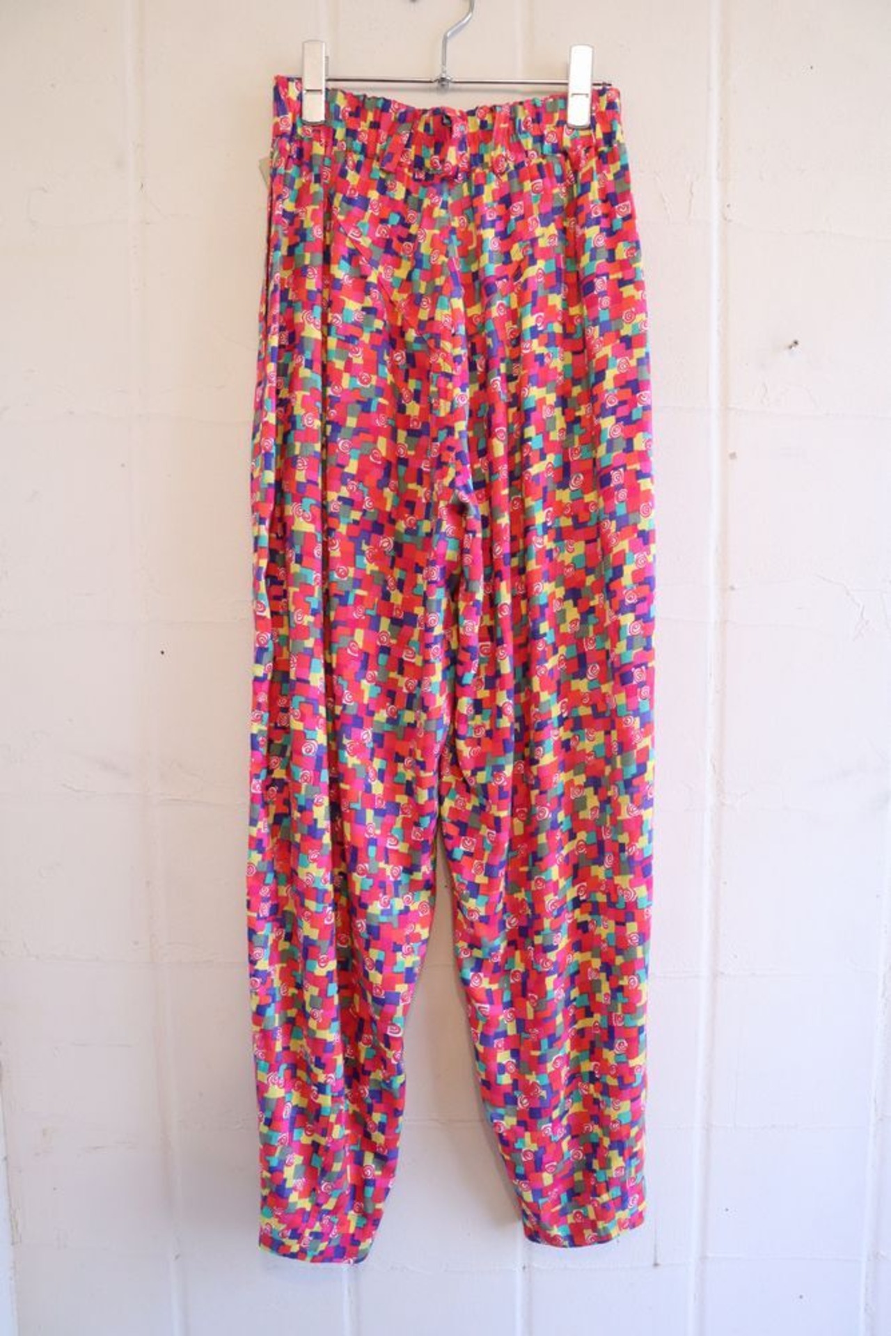 スクエアとうずまき柄が可愛いテーパードパンツです。