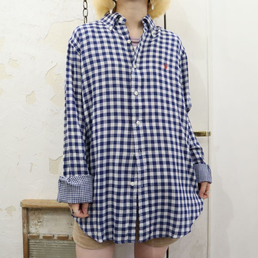 "Ralph Lauren" blue × white pride long sleeve shirt [k-504]