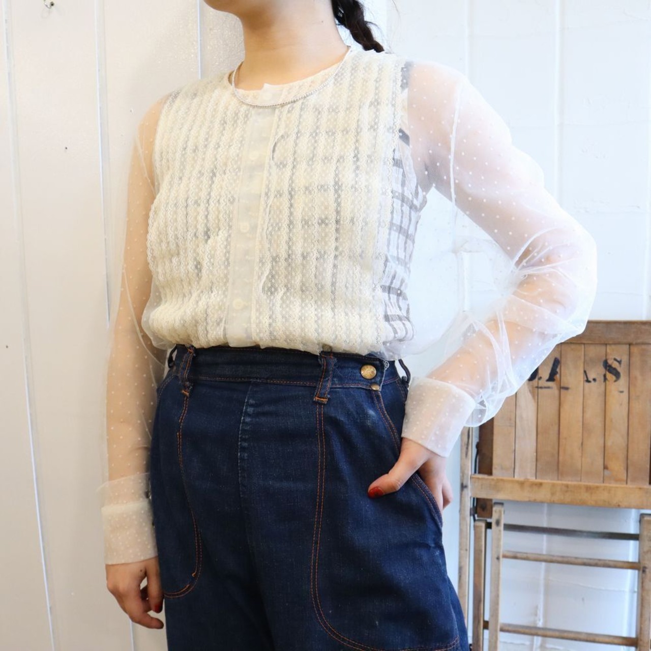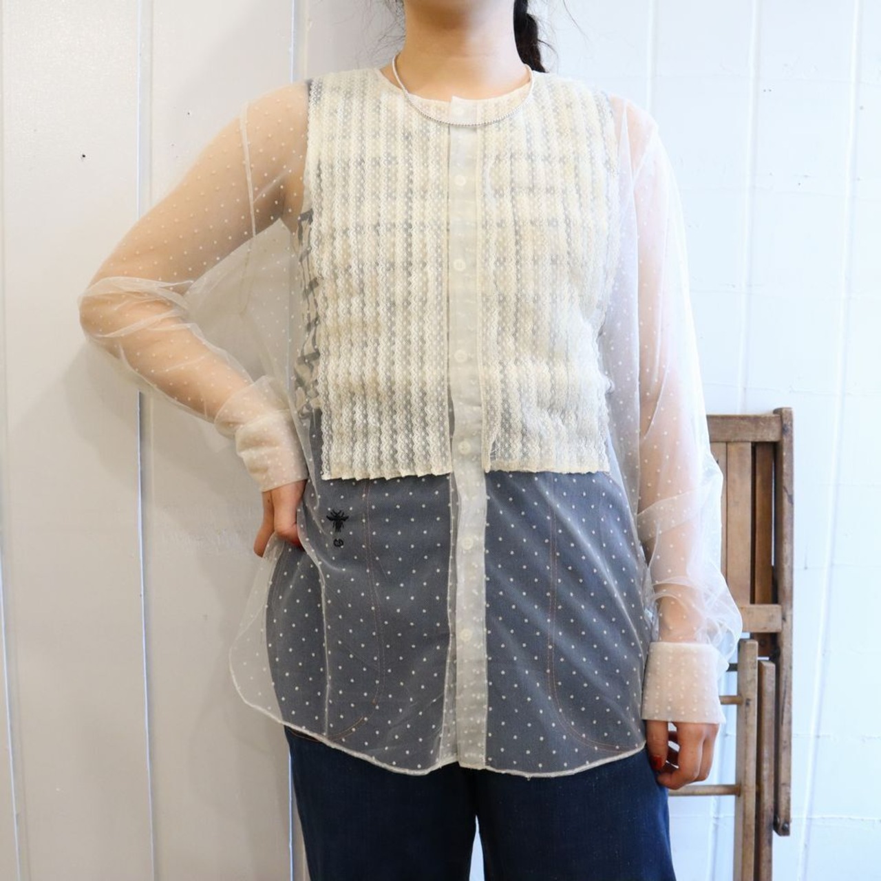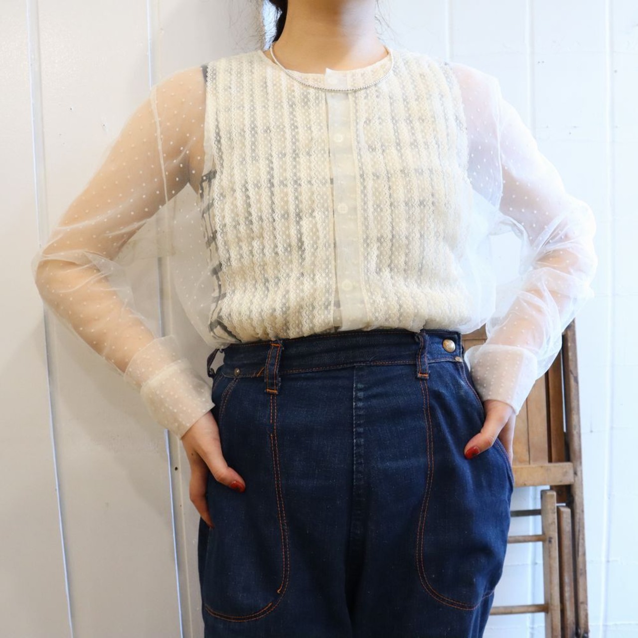 ピンドット柄のチュール生地が可愛いブラウスです。