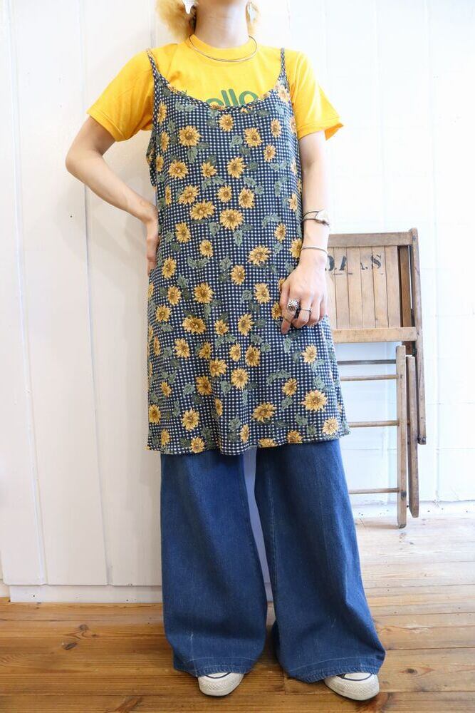 チェックとひまわりの組み合わせが可愛いキャミドレスです。