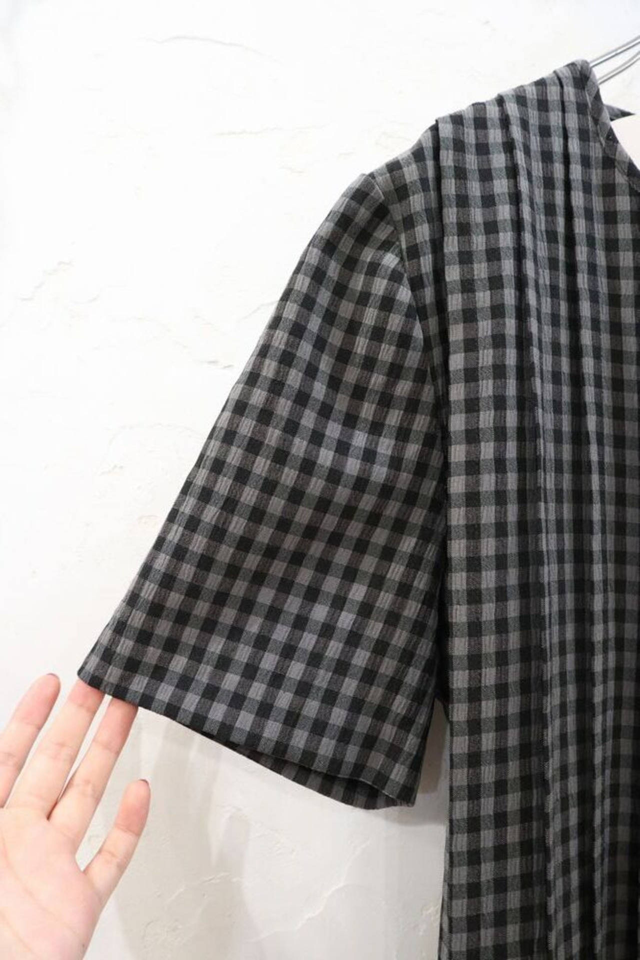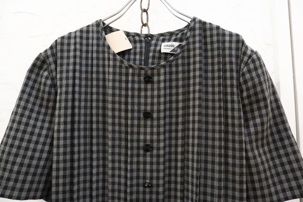 black plaid tuck design short sleeve dress [l-512]