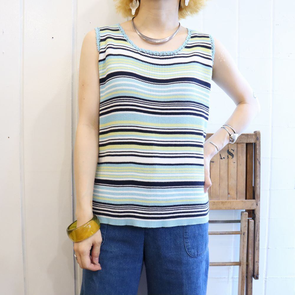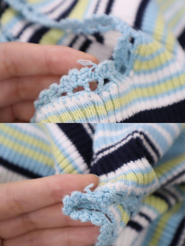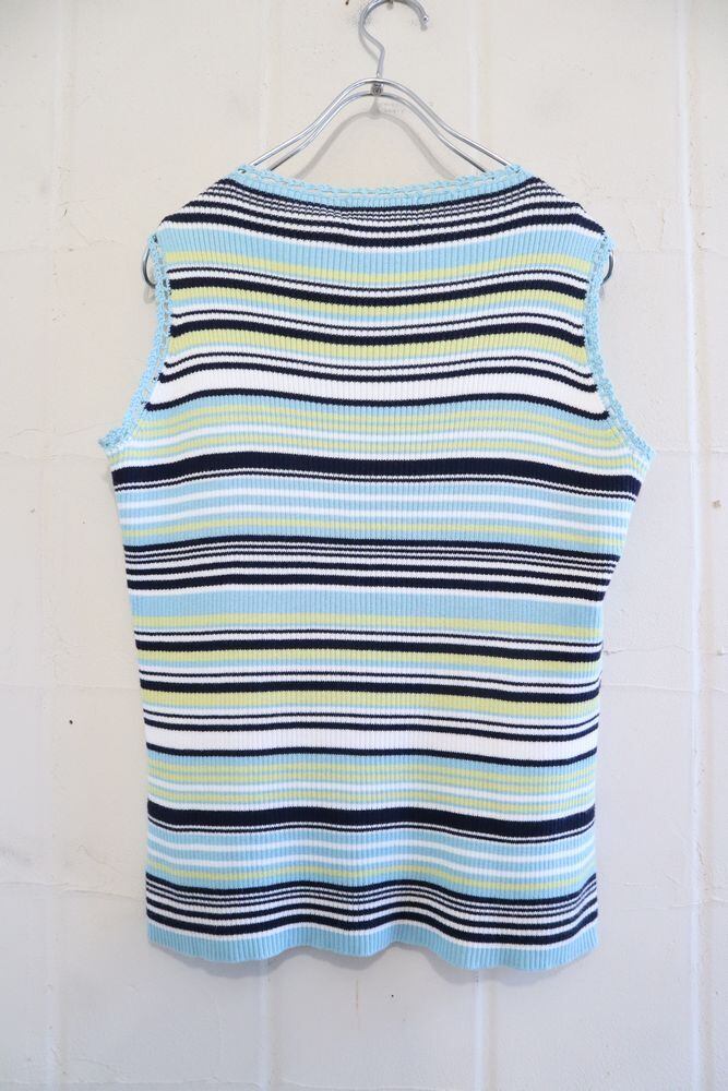 ボーダーとかぎ編みレース付きが可愛いコットンニットのノースリーブトップスです。