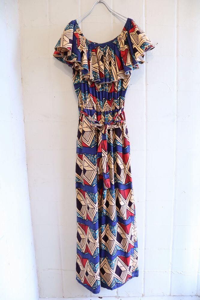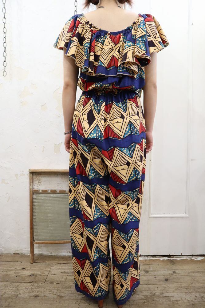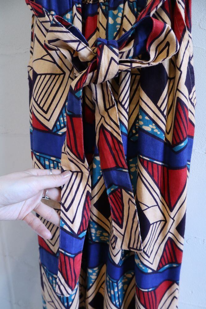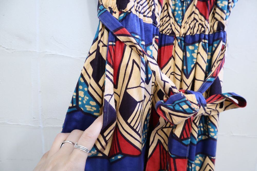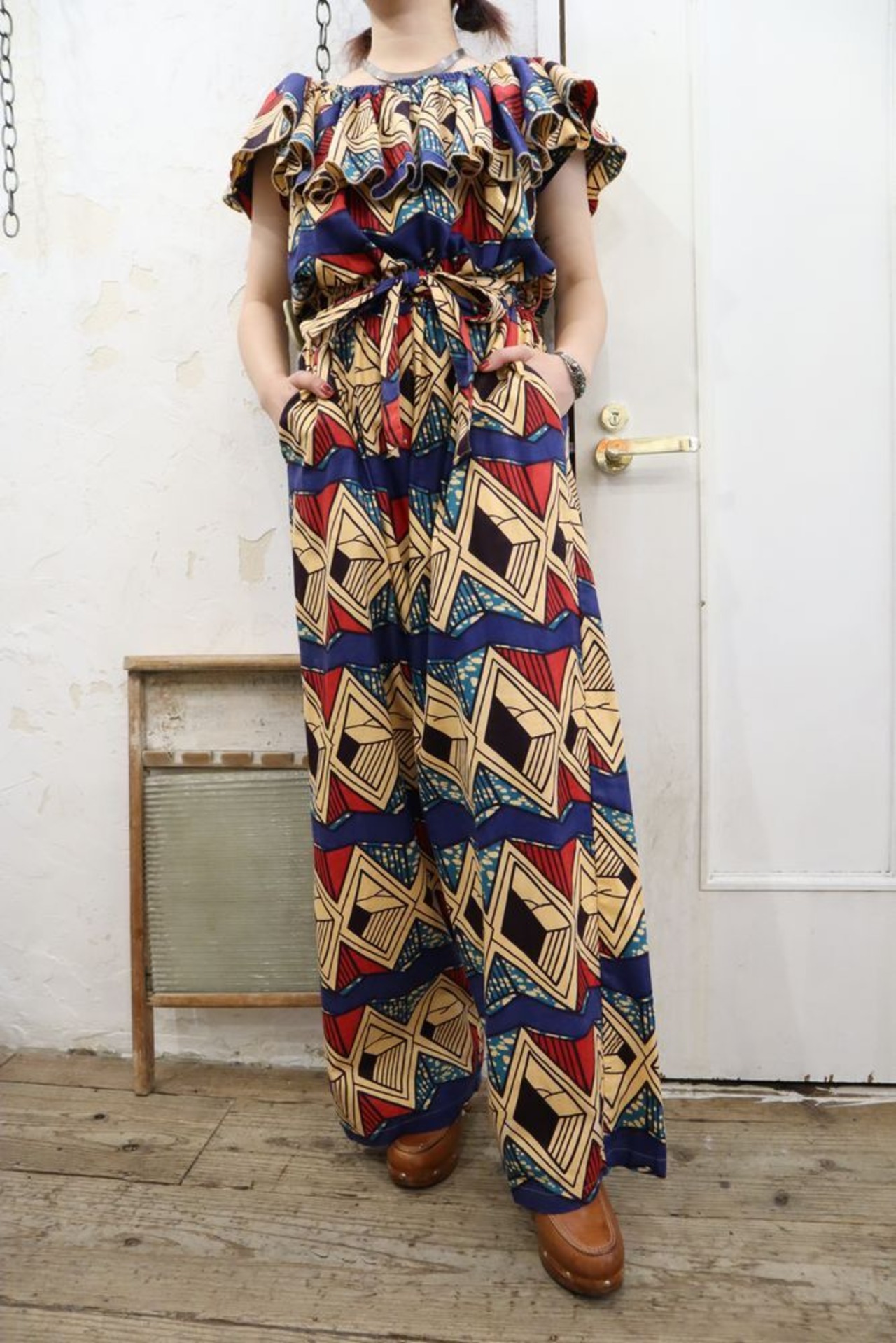 ふわりと広がるケープカラーと幾何学なテキスタイルが素敵な一枚。
