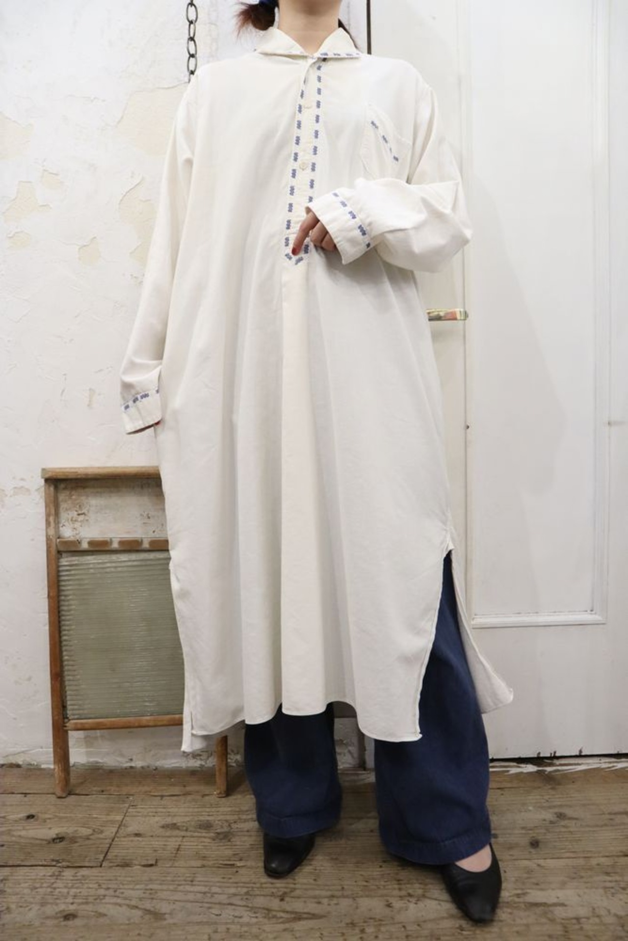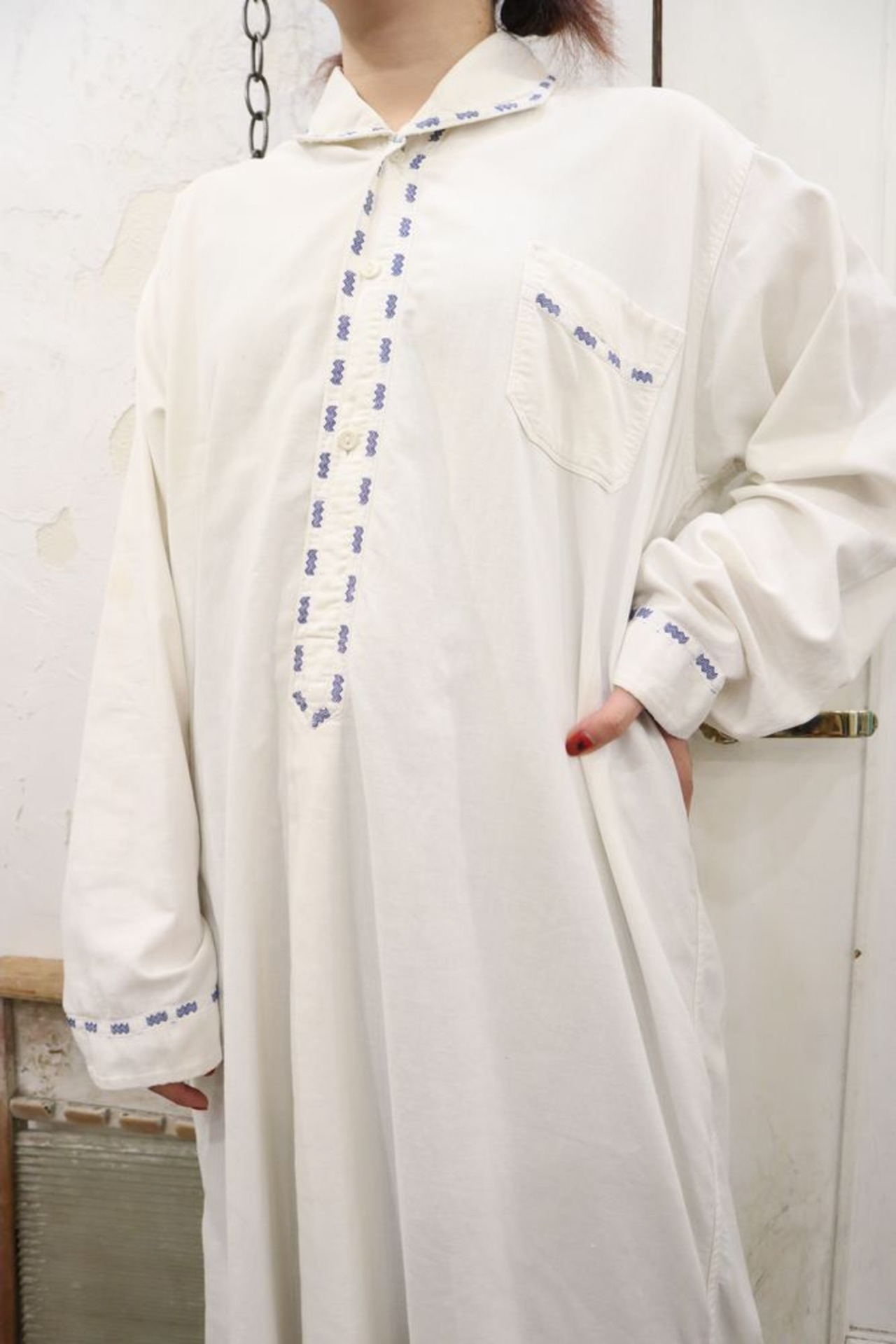 white × blue design long sleeve dress [k-544]