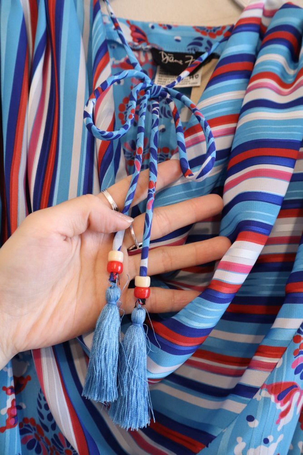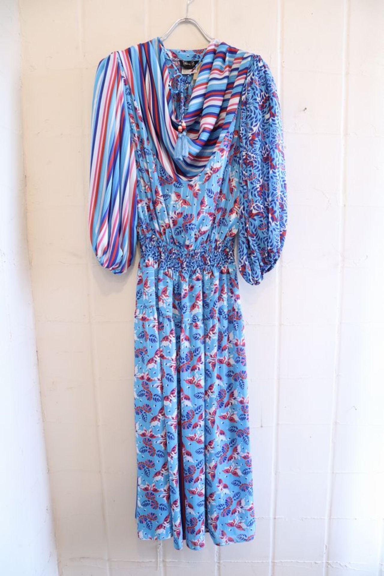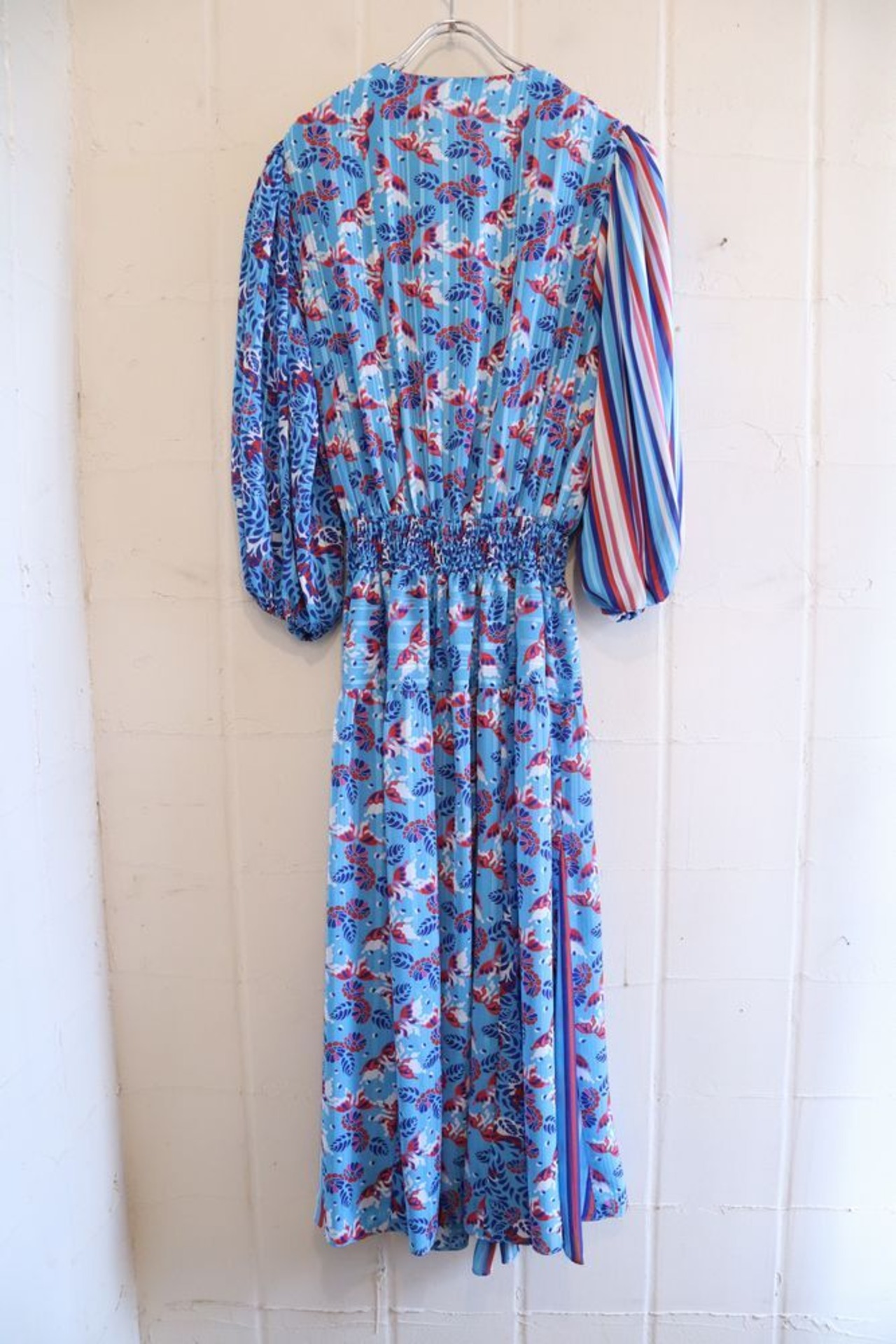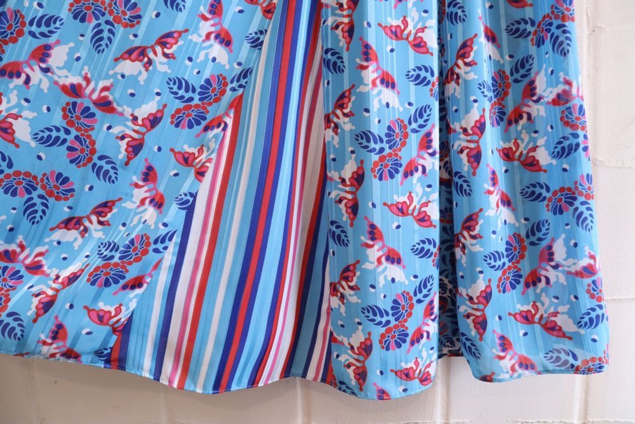 80s lightblue×red×white butterfly&stripe pattern dress [l-548]