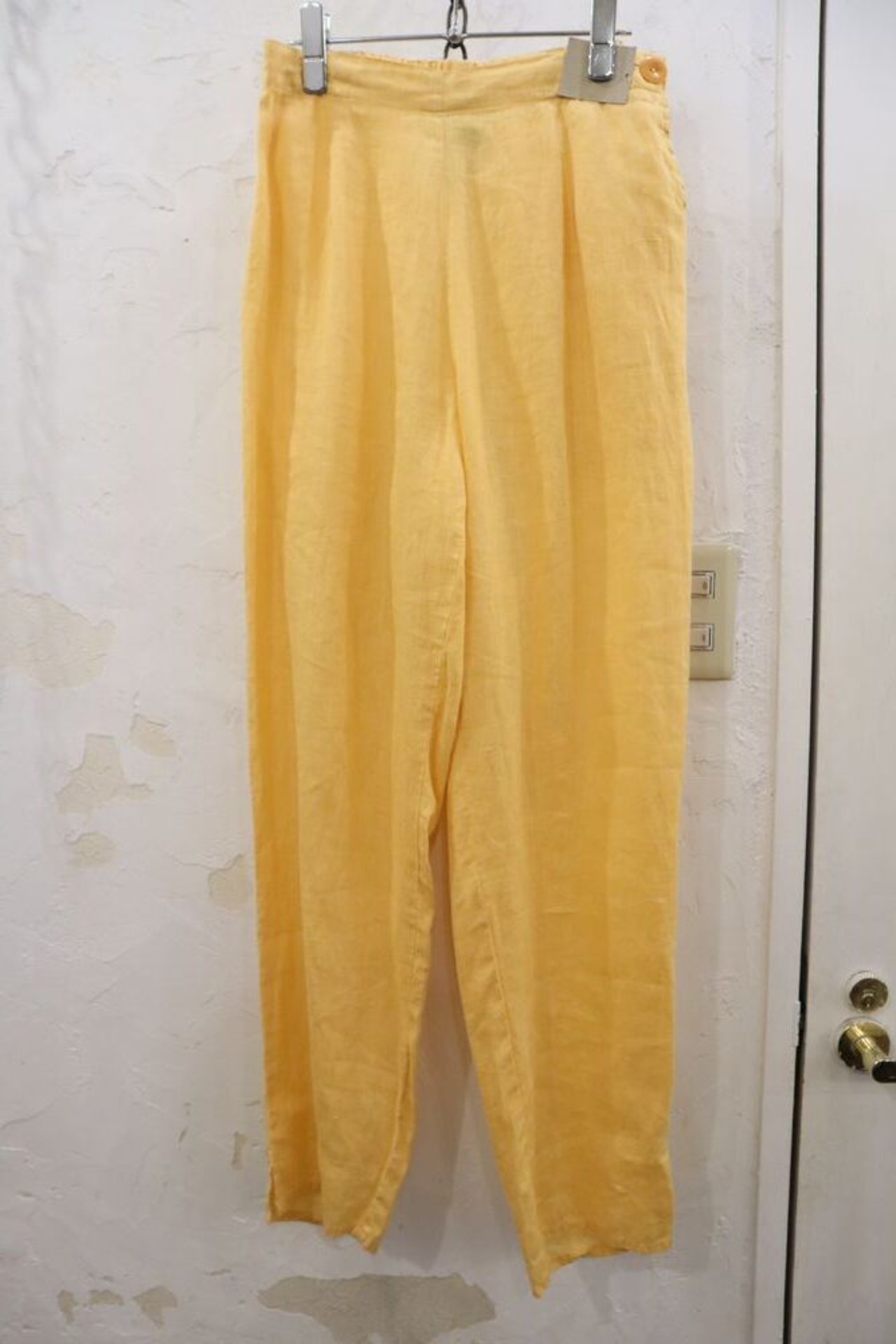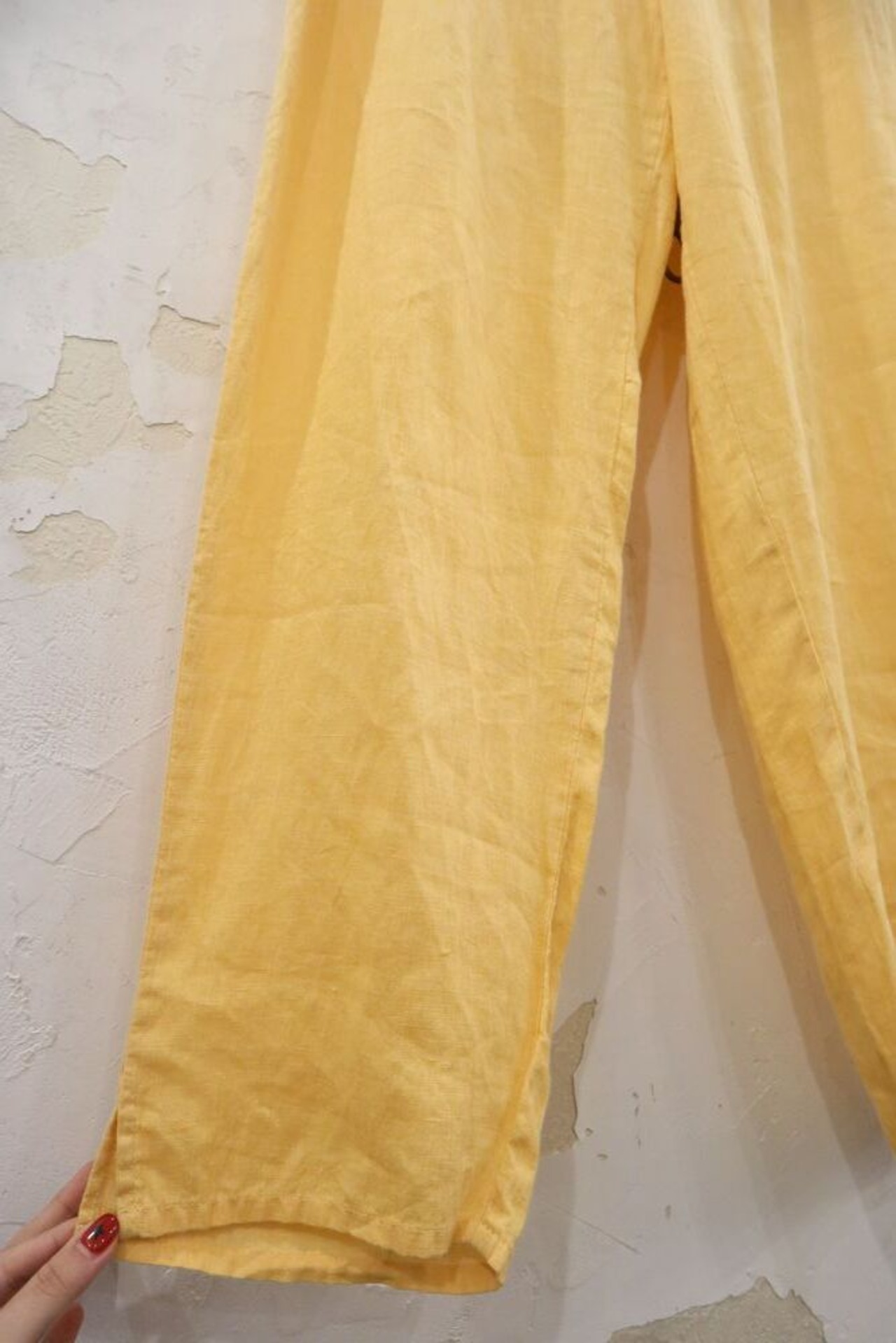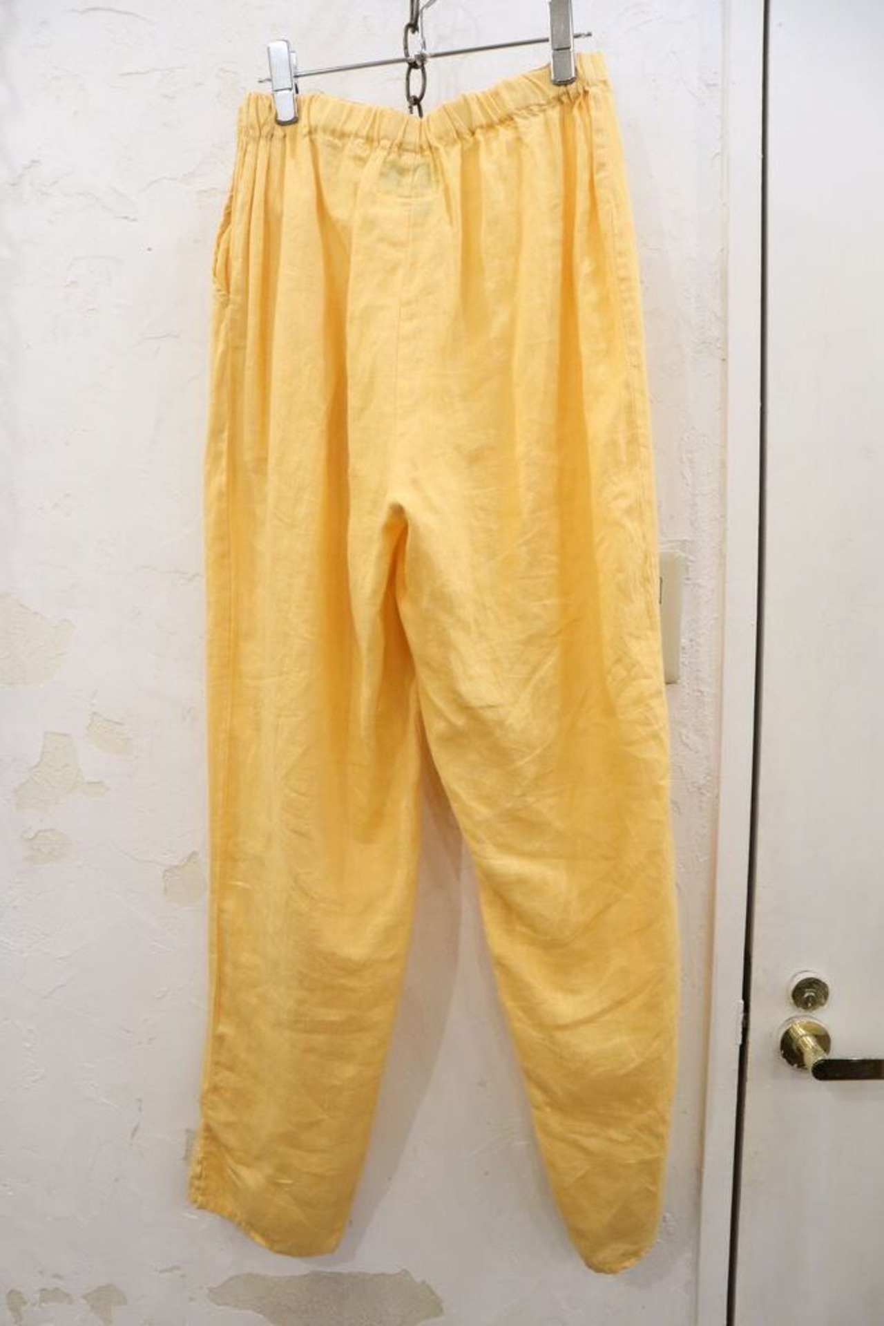 "FLAX" yellow plain linen pants [k-562]