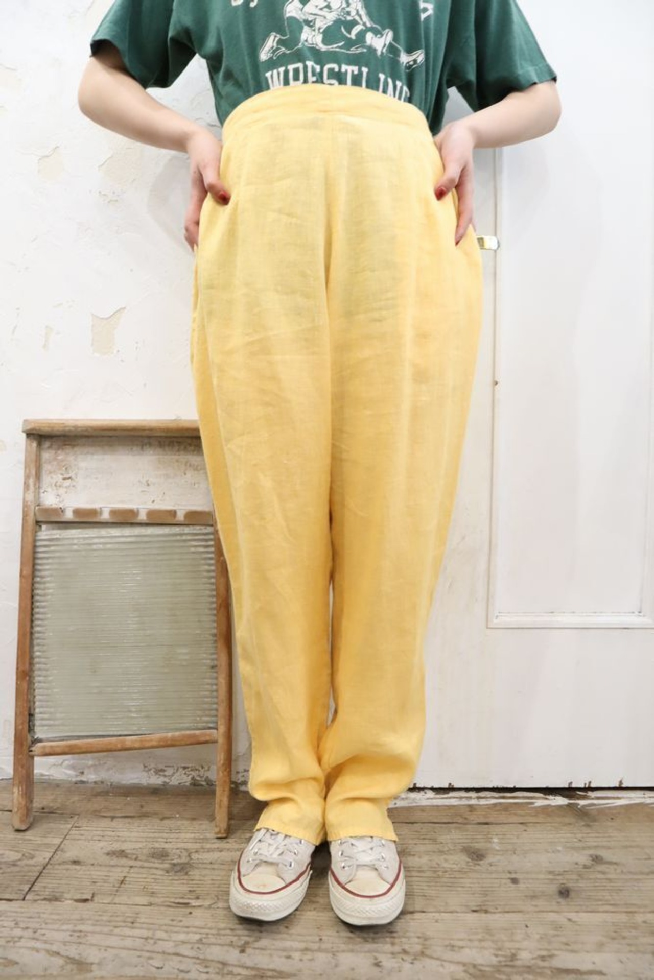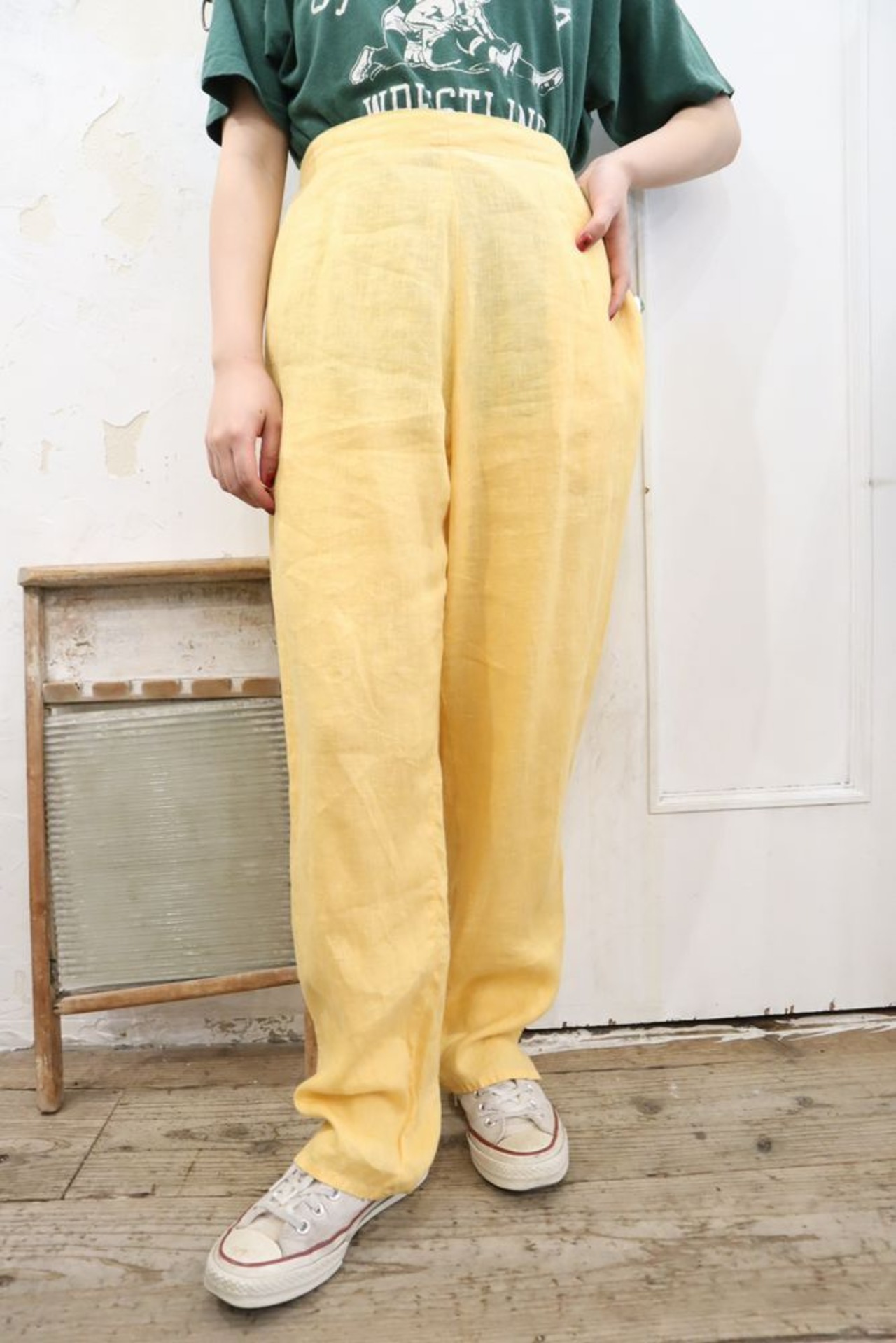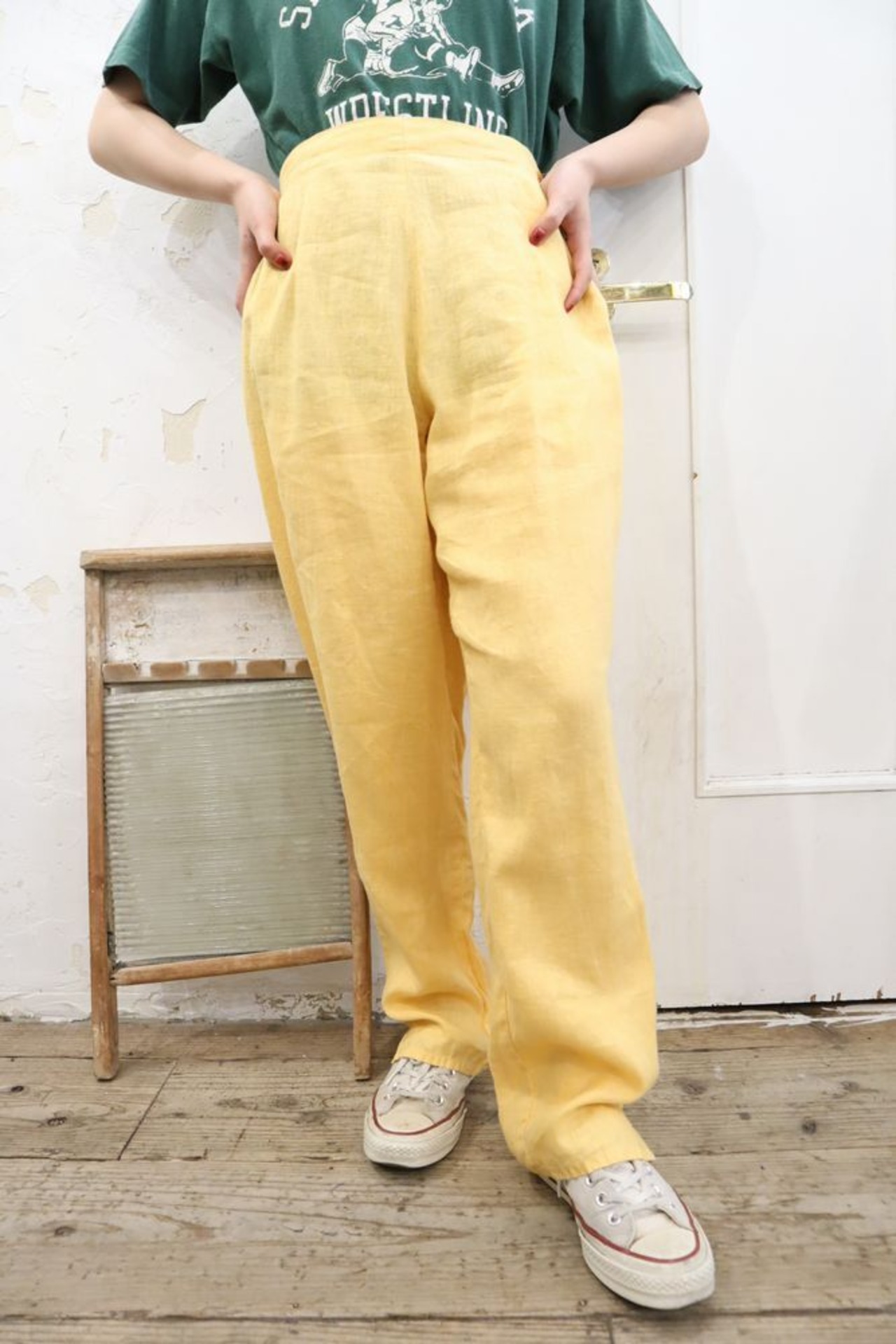 "FLAX" yellow plain linen pants [k-562]