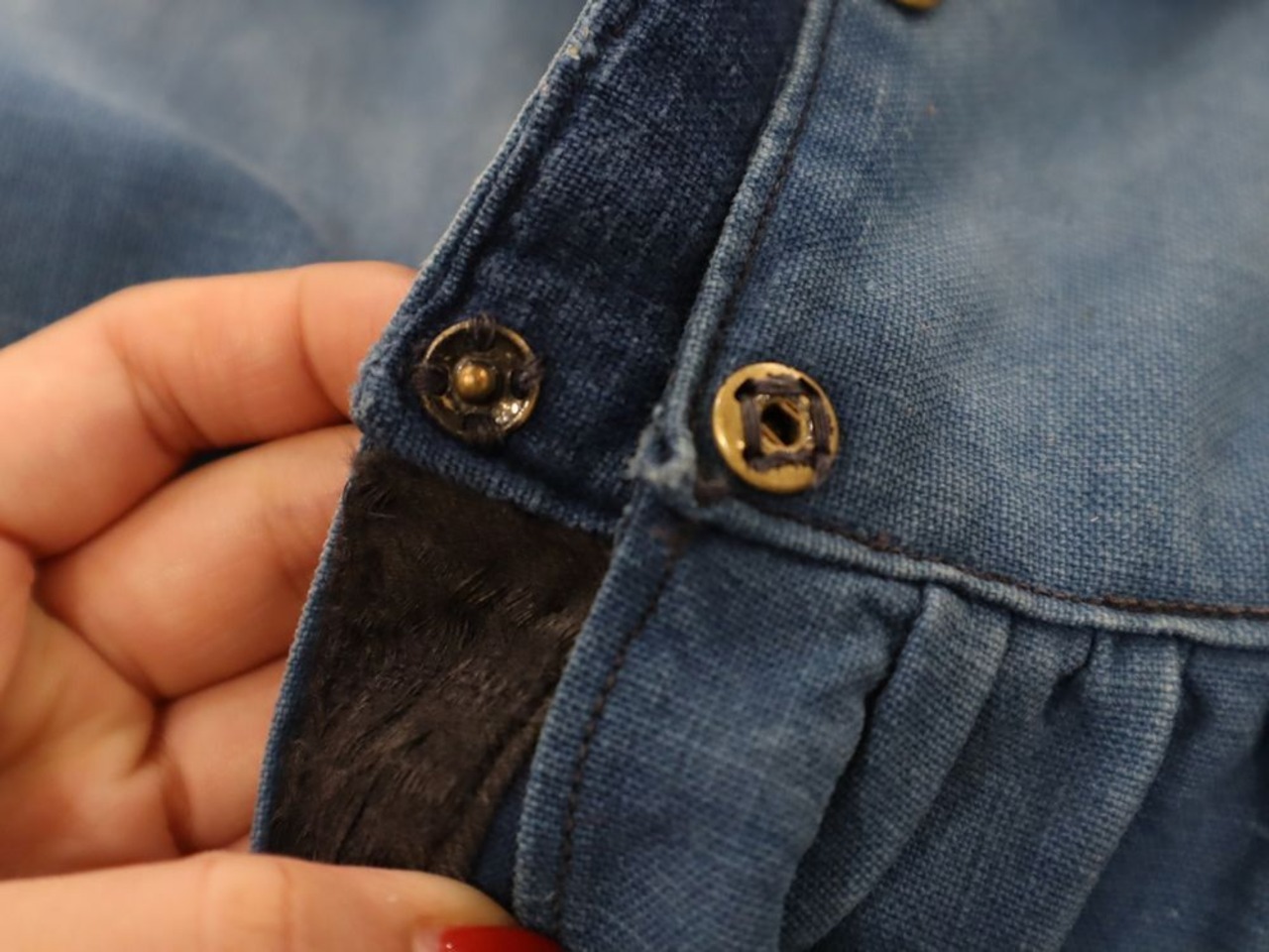 いくつか汚れや小さな生地の毛羽立ち、一部リペア跡が見受けられますが、古着の味わいとして着て頂けるかと思われます。