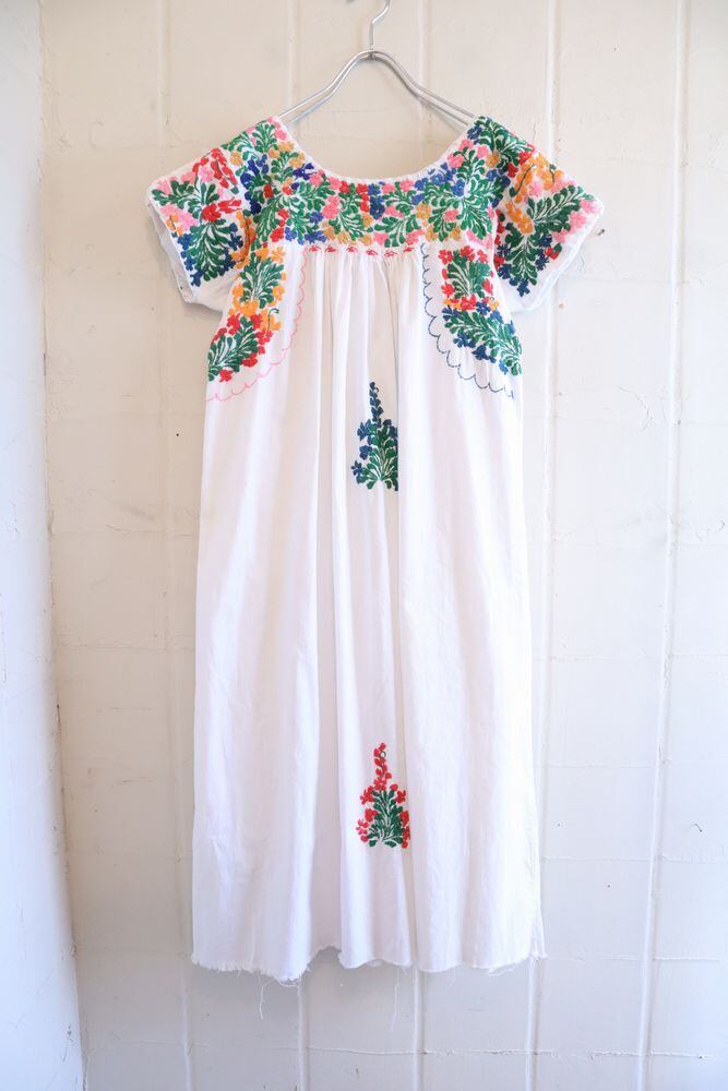 white×green×colorful san antonio embroidery Mexican dress [l-565]