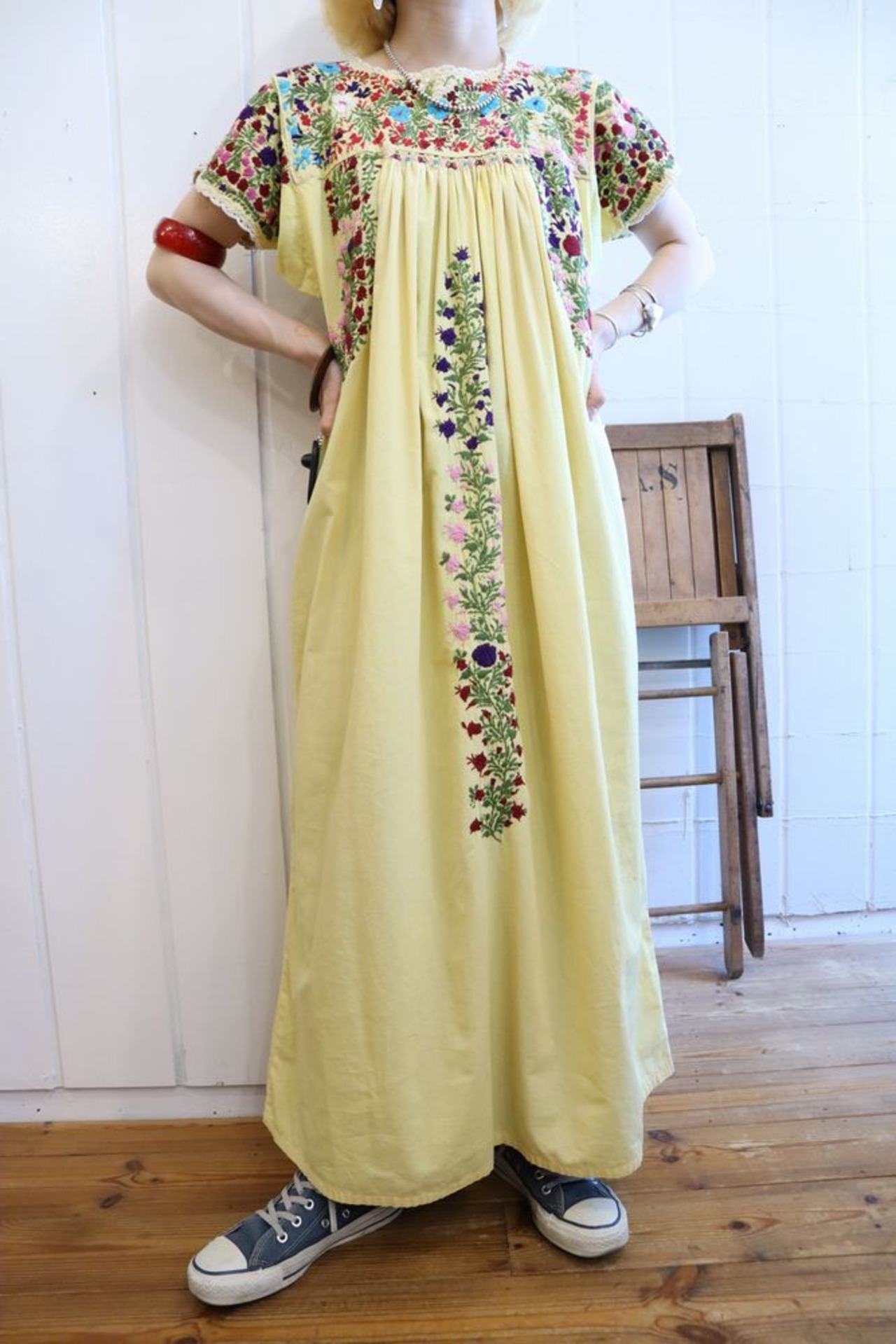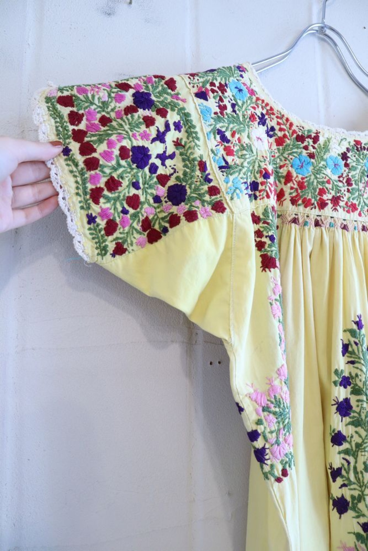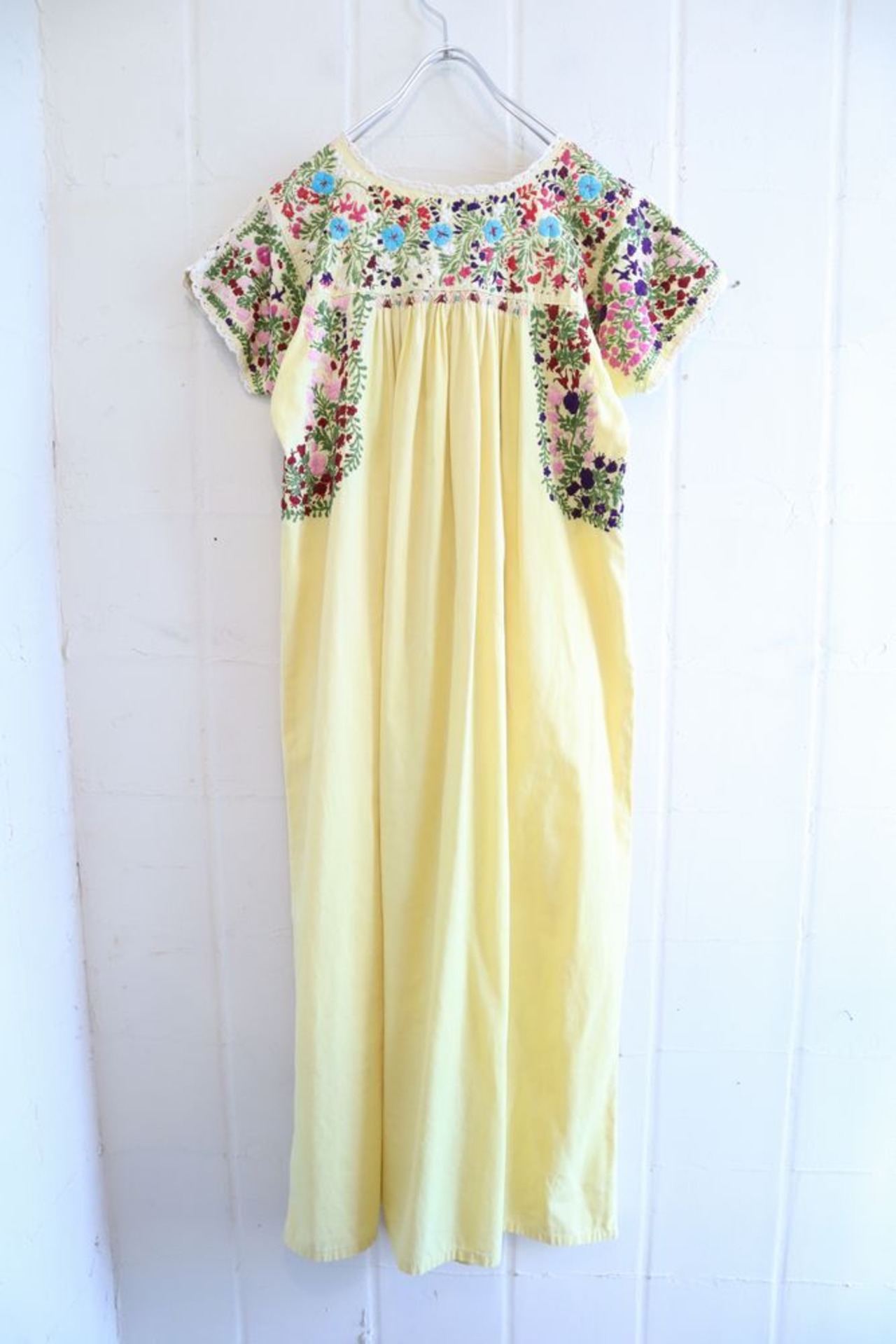 lightyellow×colorful san antonio embroidery Mexican dress [l-566]