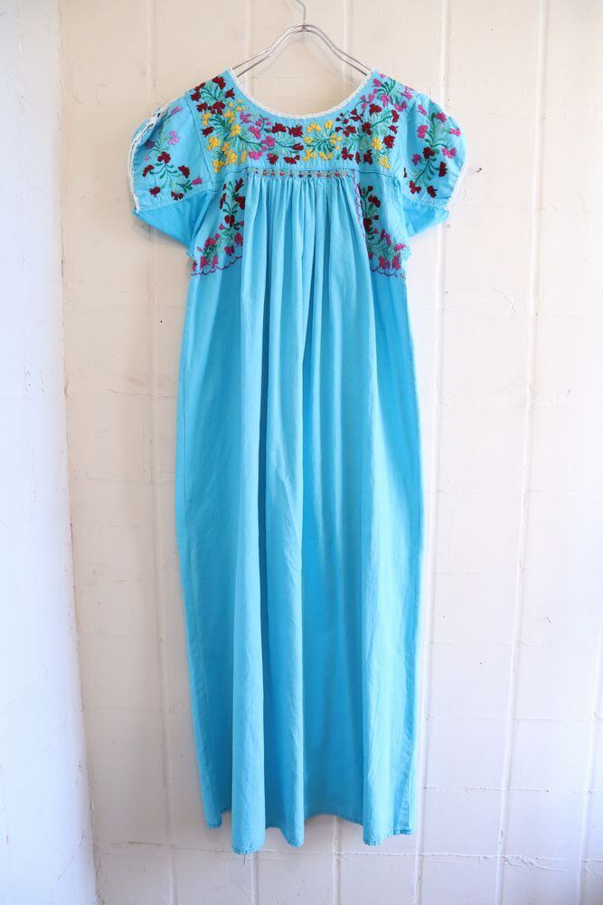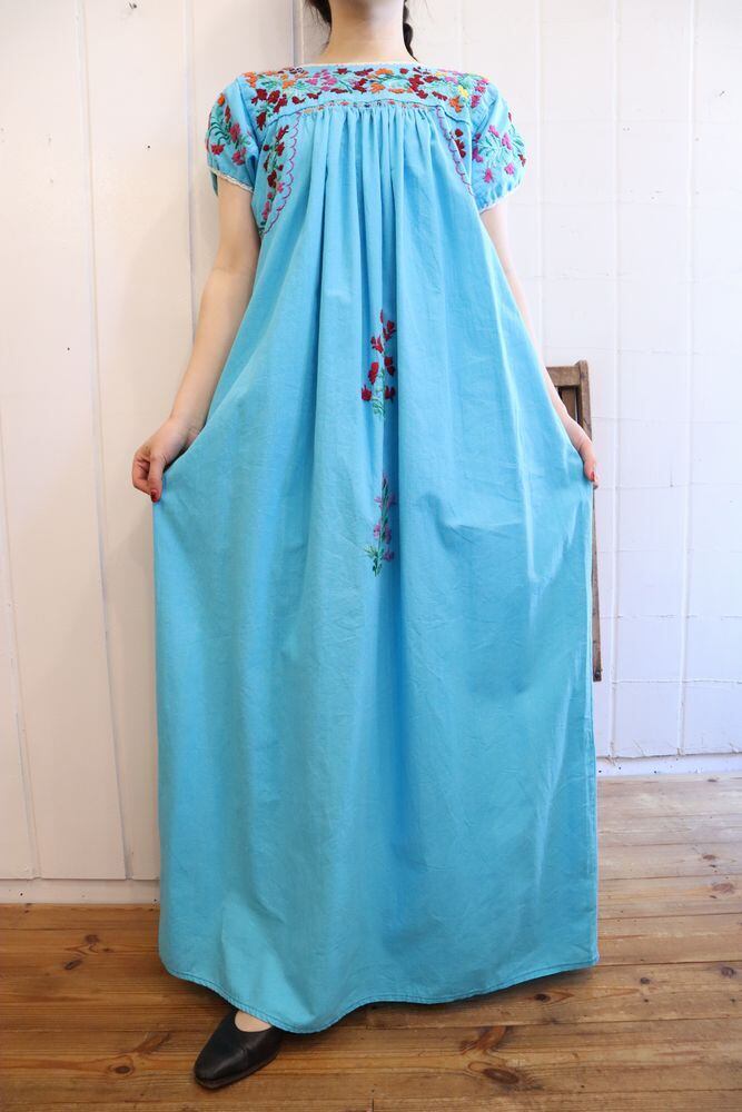 lightblue×colorful san antonio embroidery Mexican dress [l-568]