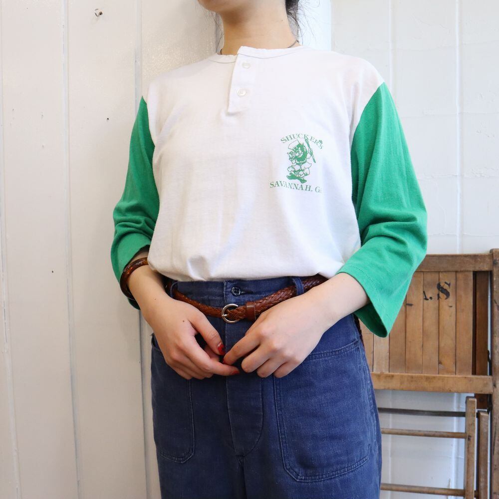 七分袖ですが、古着のTシャツならではの薄手の生地感で長いシーズン活躍してくれそうです*