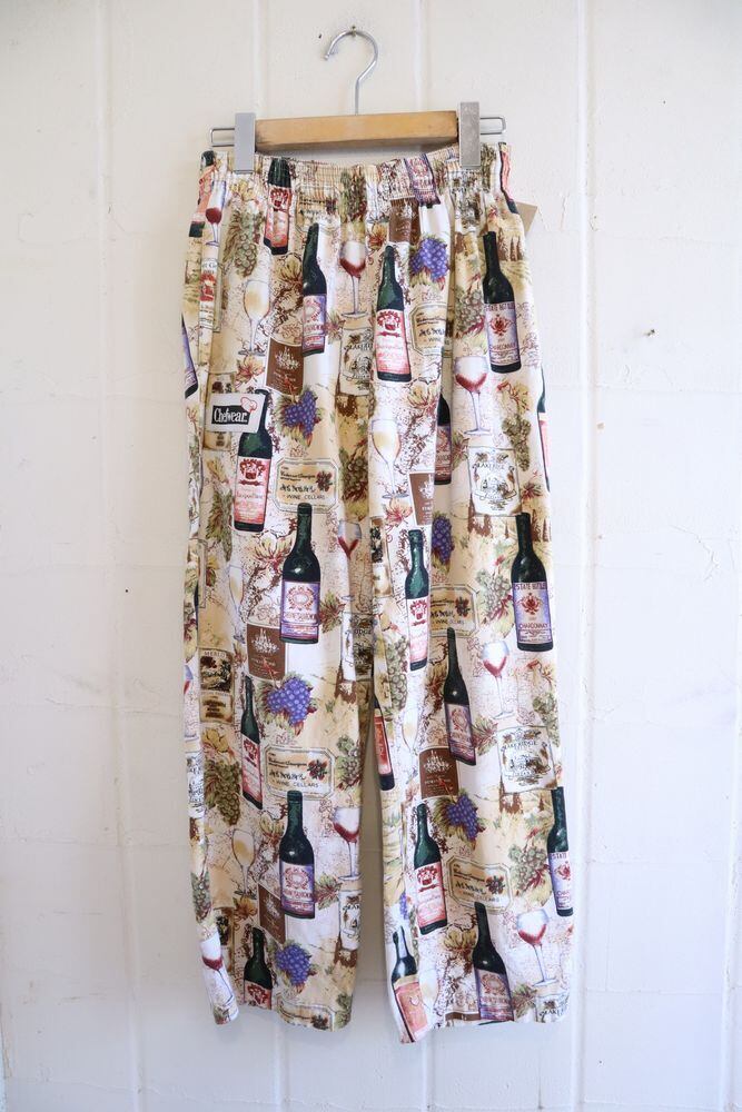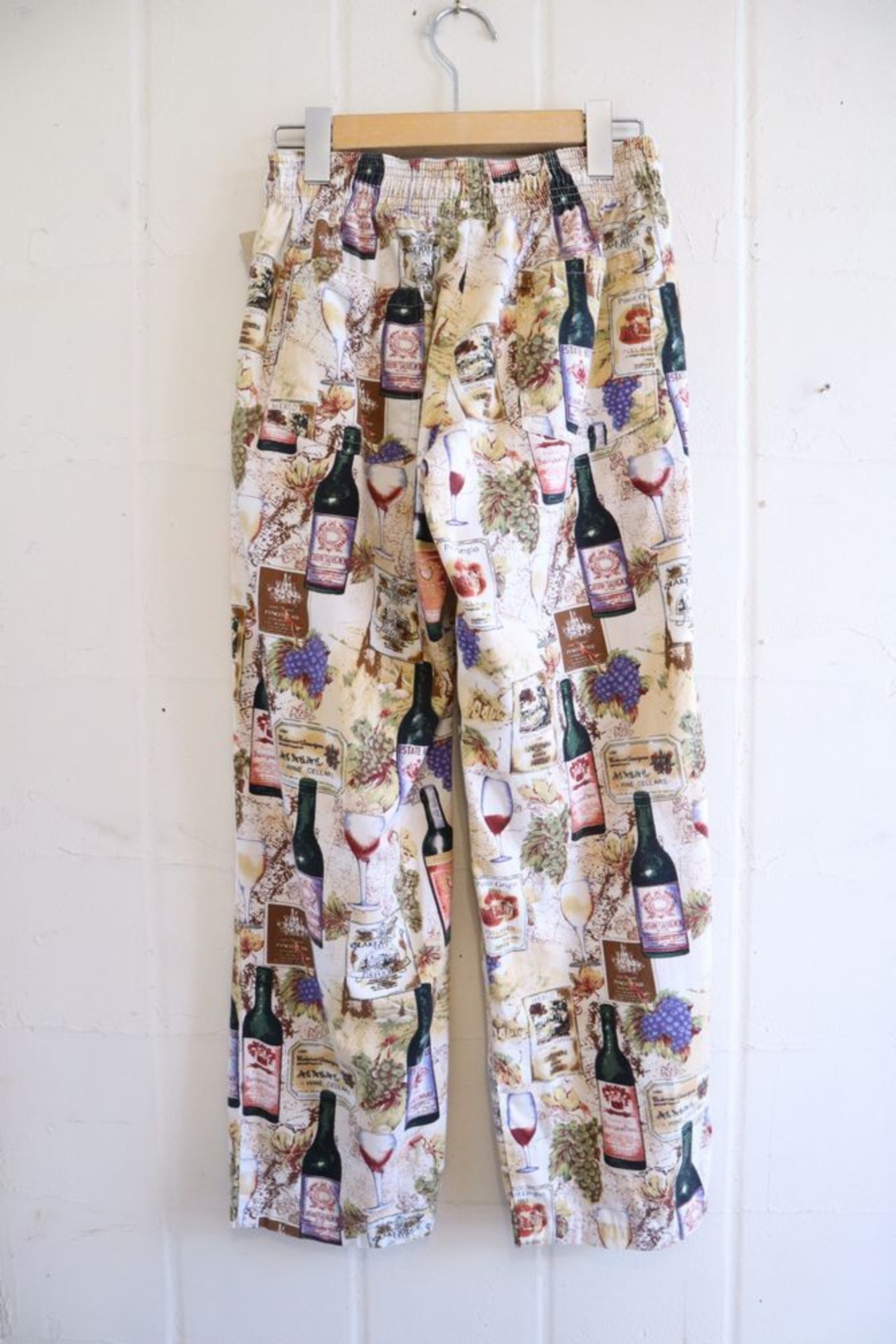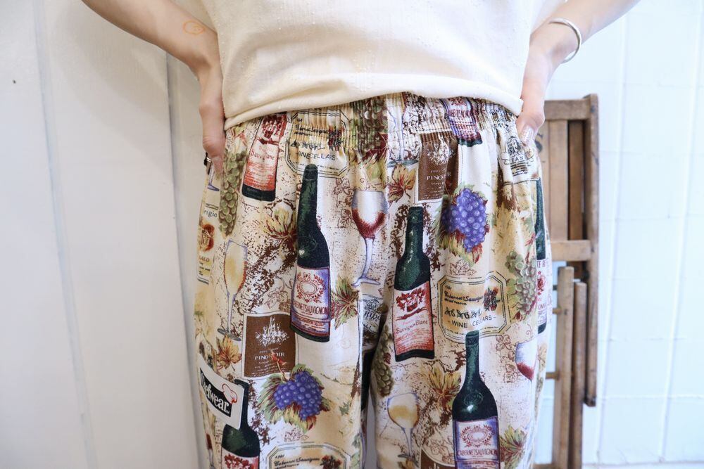 ワインボトルやグラスがユニークで可愛いパンツです。