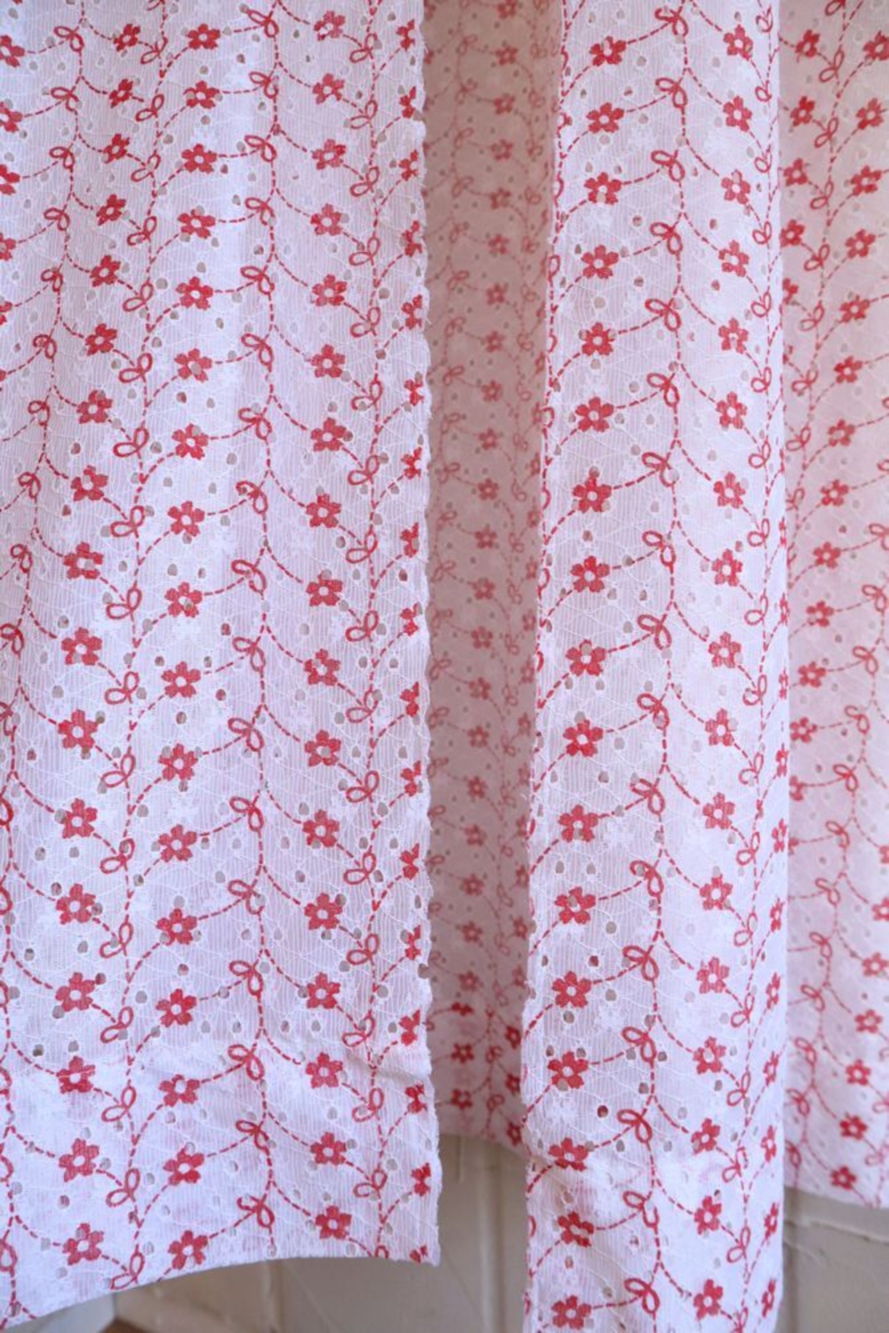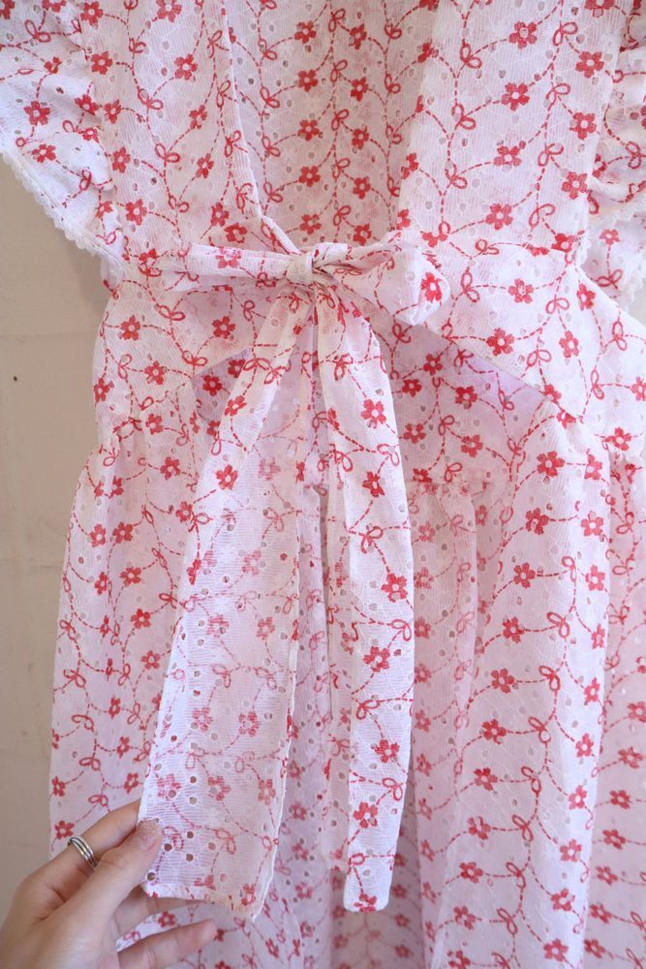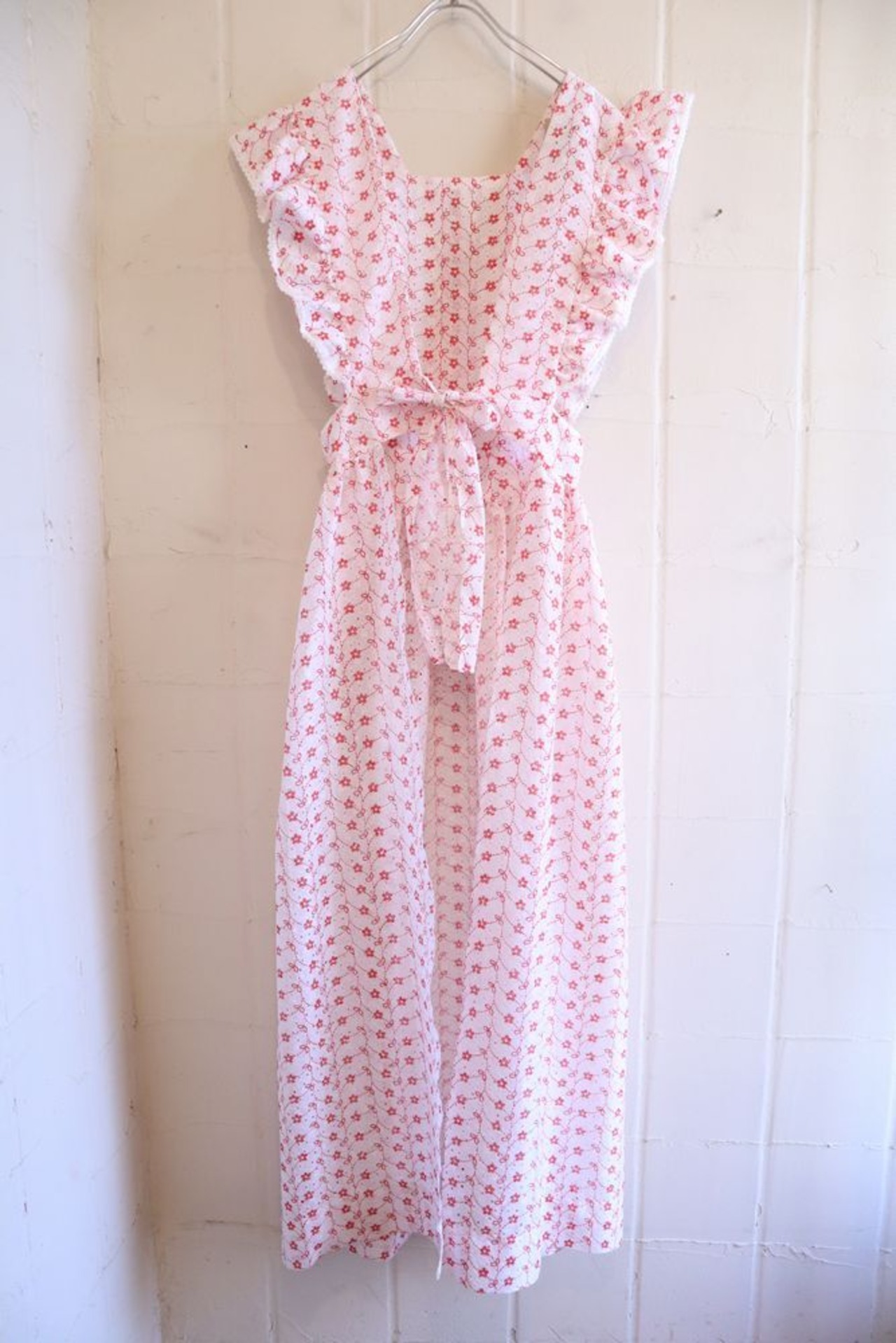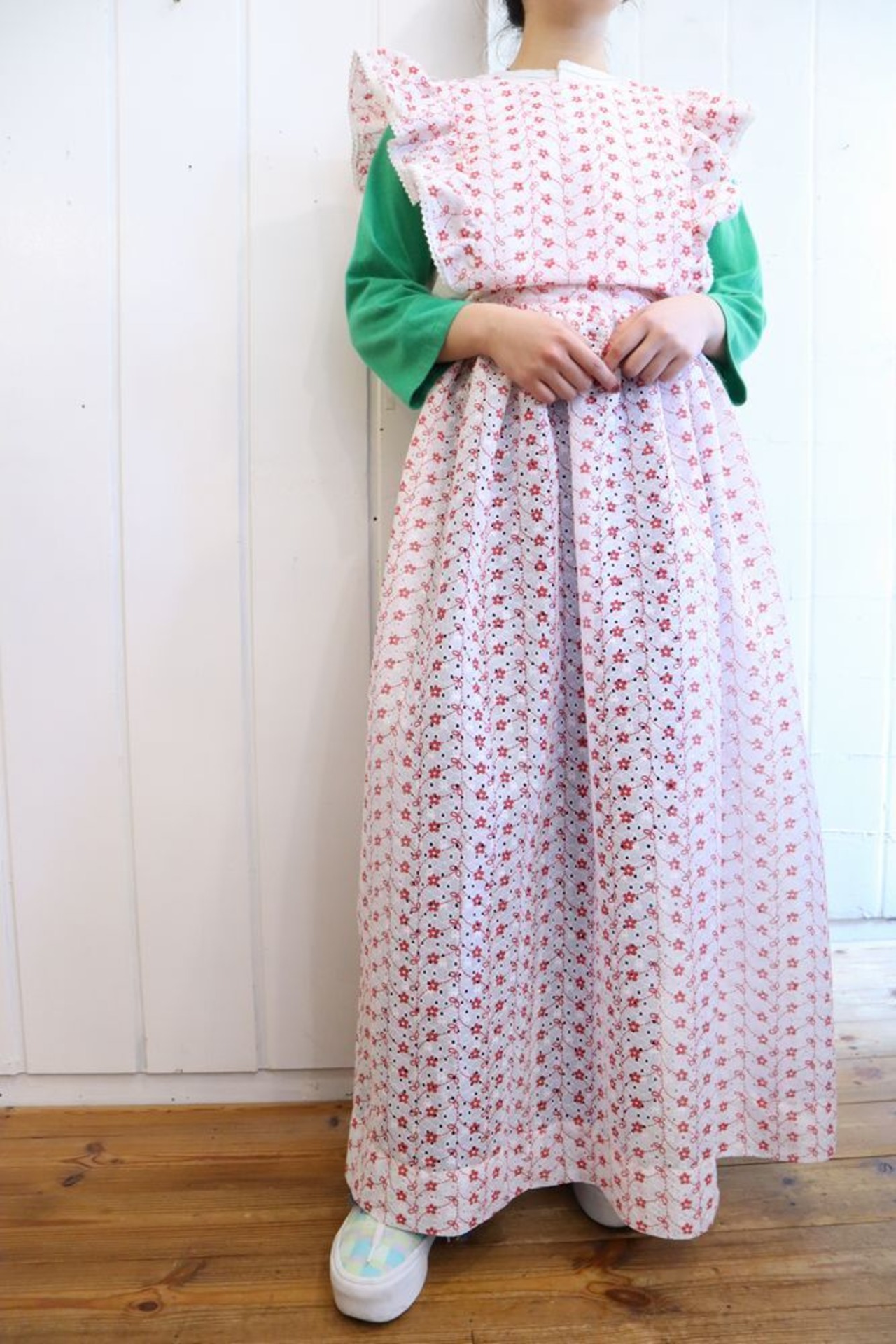 お花のプリントと〇のカットワークが可愛いエプロンドレスです。