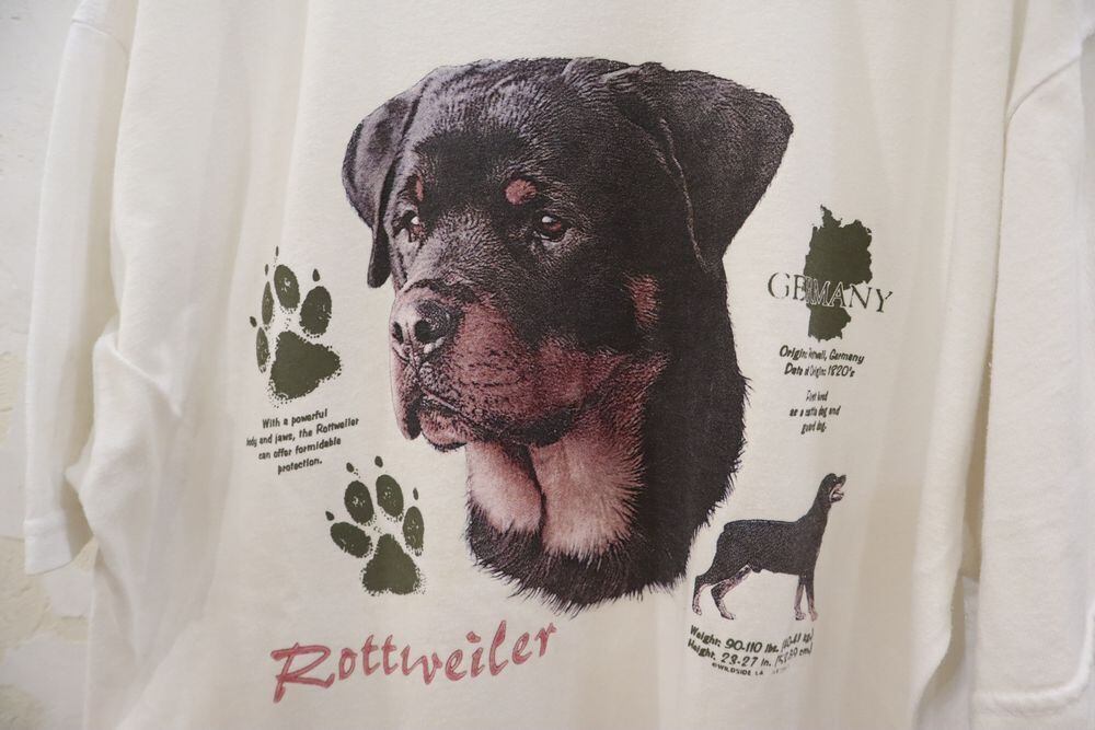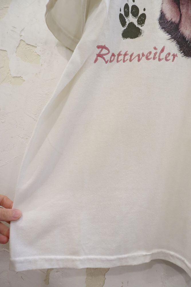 90-00s white × black dog print Tshirt [l-599]