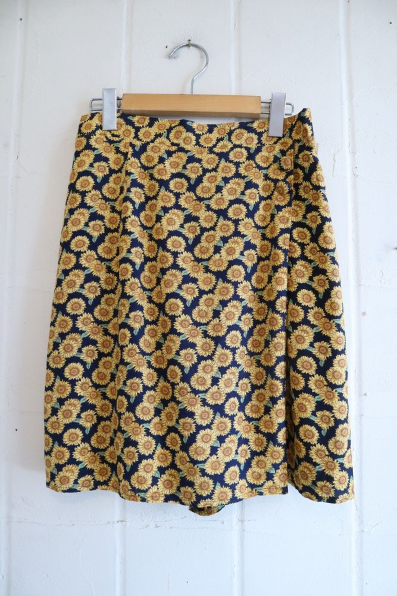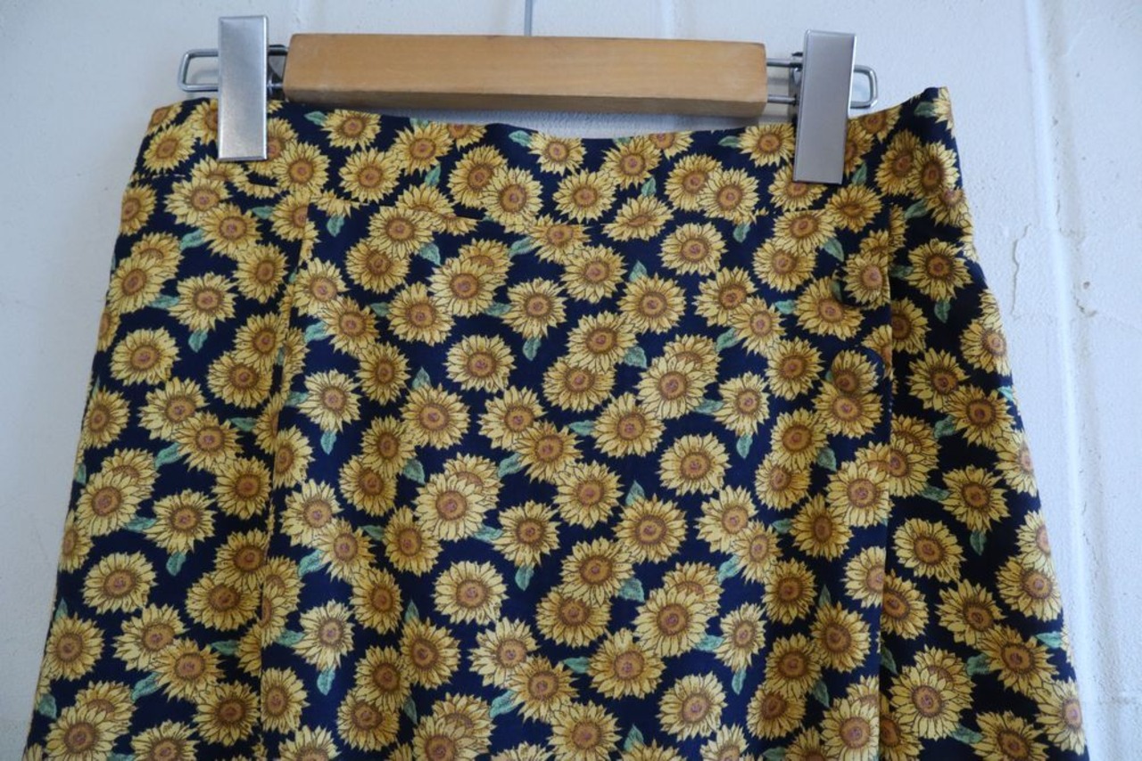 navy × yellow sunflower pattern culottes [l-609]