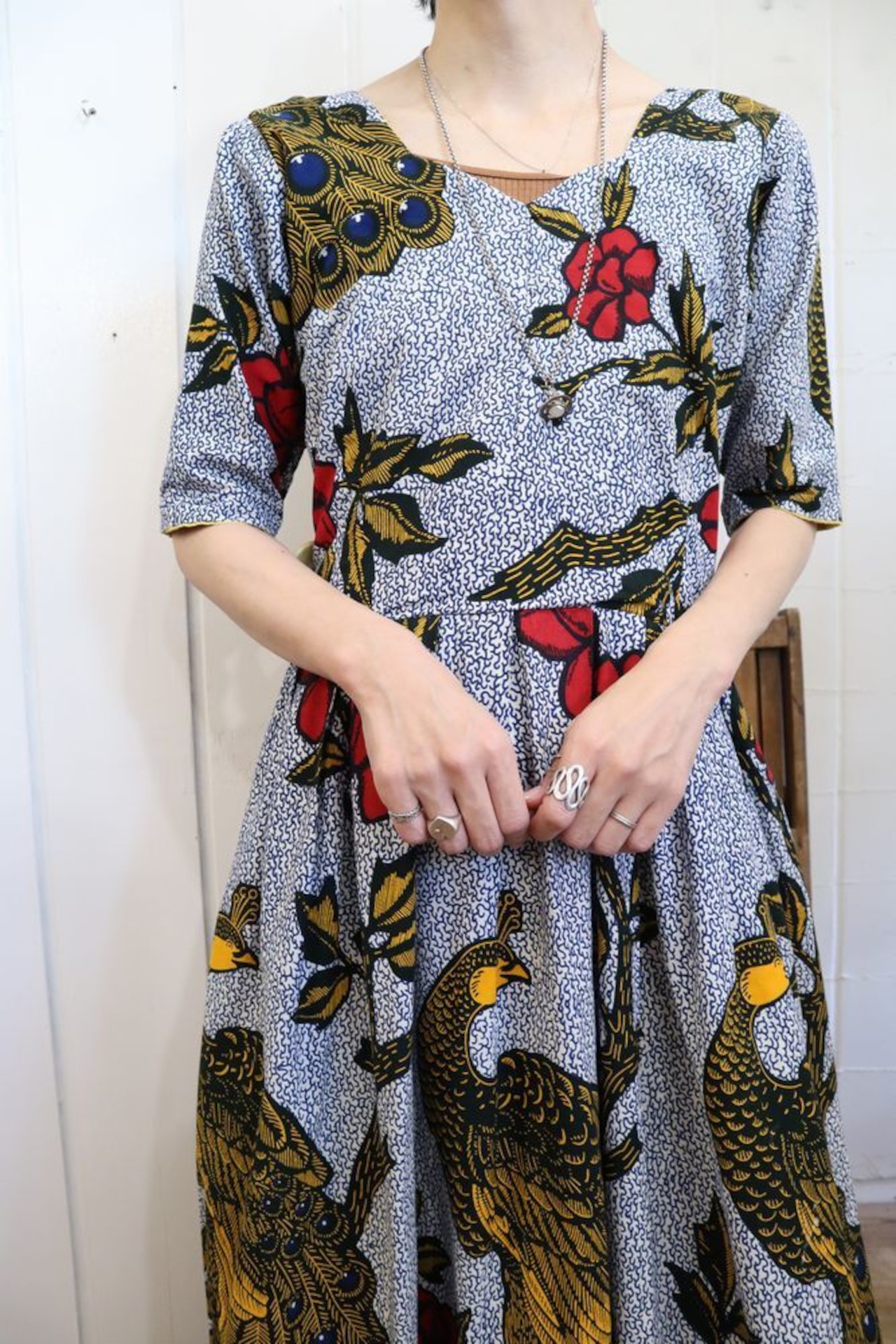 さらっと一枚でコーディネートが完成するのもアフリカンバティックドレスの魅力ですね*
