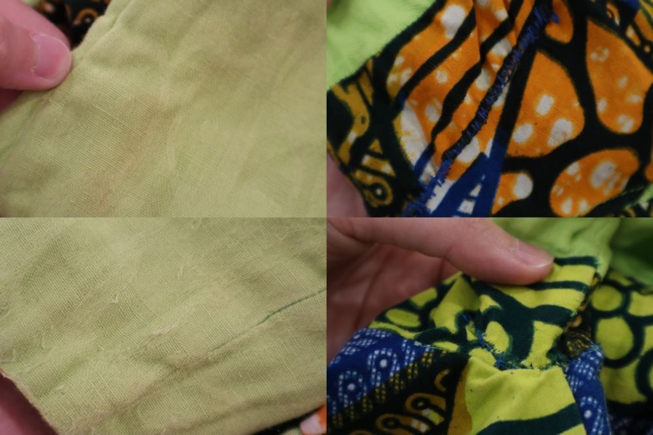 いくつかシミ汚れや色移りのような汚れ、生地の毛羽立ちが見受けられますが、古着の味わいとして着て頂けるかと思われます。
