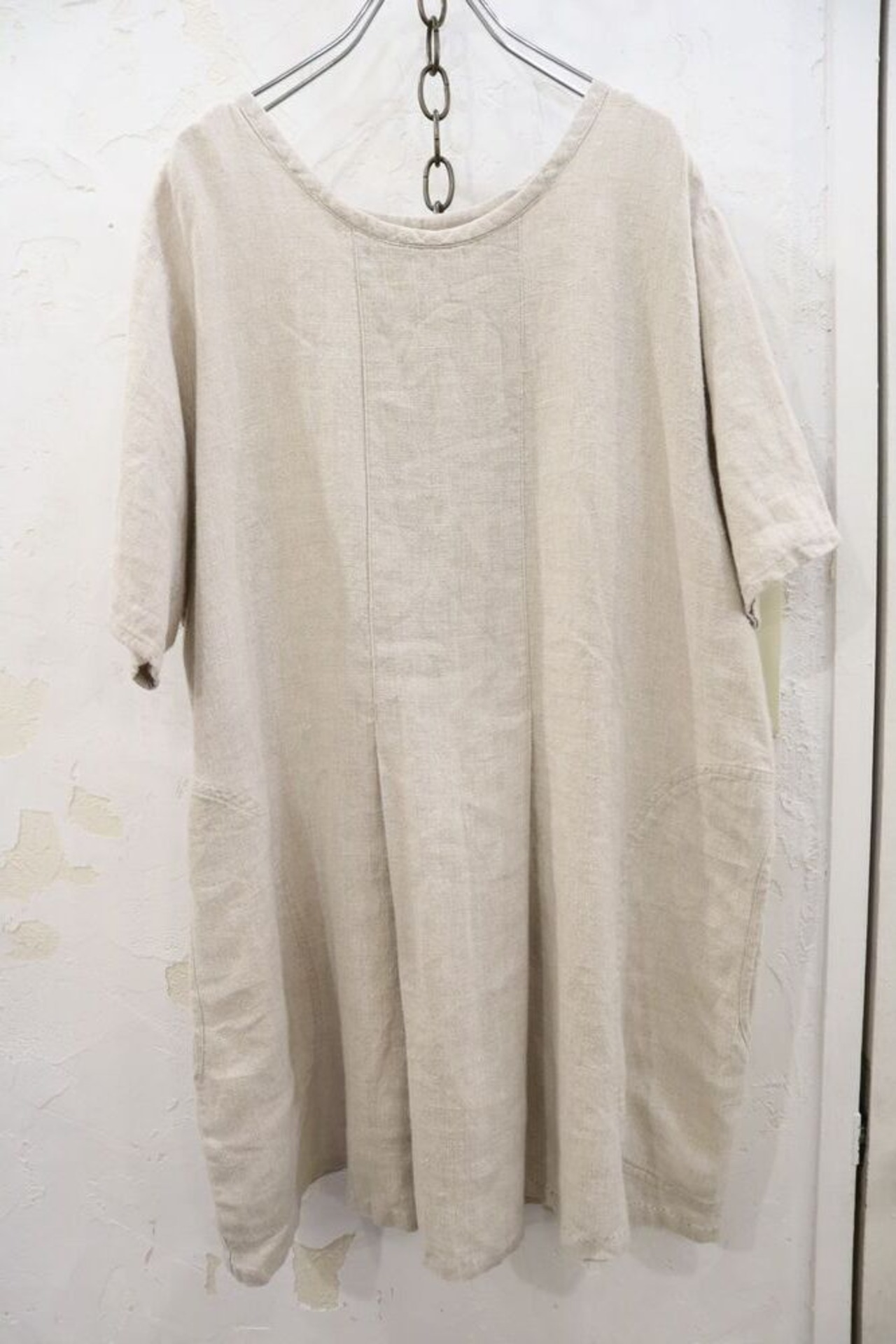 "FLAX" graybeige tuck design short sleeve top [k-628]