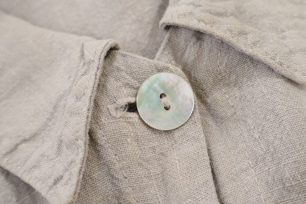 シンプルな生地に貝ボタンが映えるリネンシャツです。
