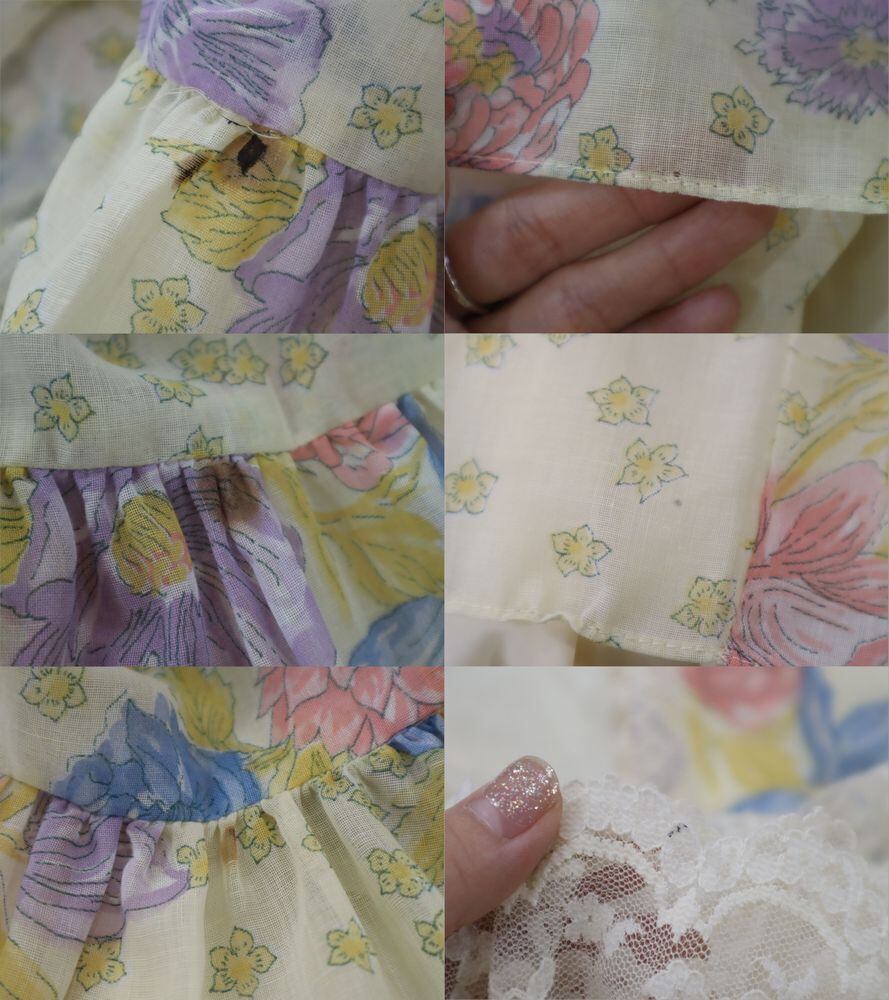 肩の縫い目にレース端が飛び出たまま縫われておりますが、こちら縫製の際にできたと思われます。