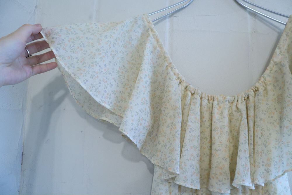 2つの花柄とレースで切替られたシルエットが素敵ですね。