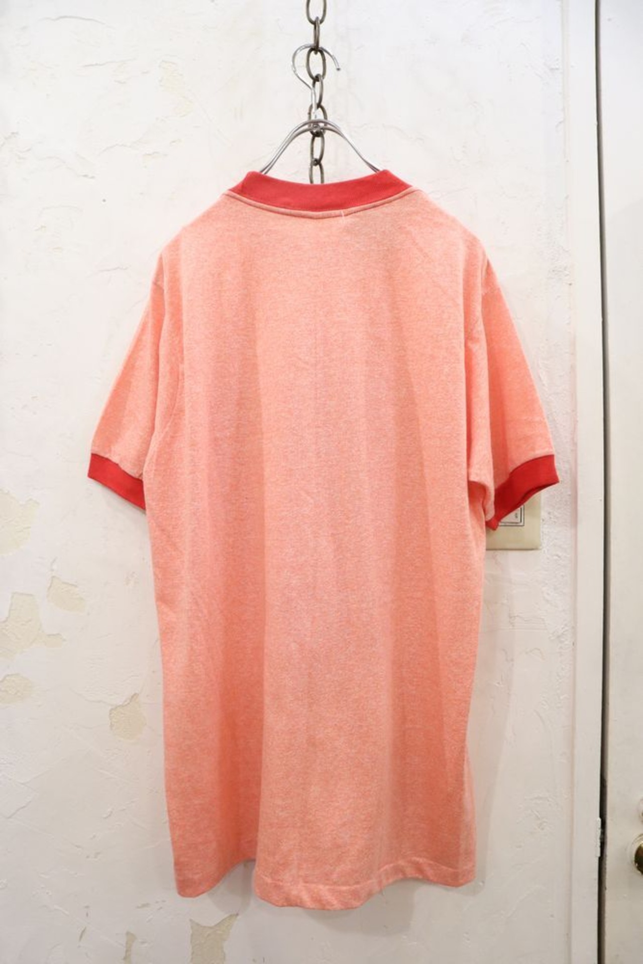 80s pink × red frocky print ringer T-shirt [k-642]