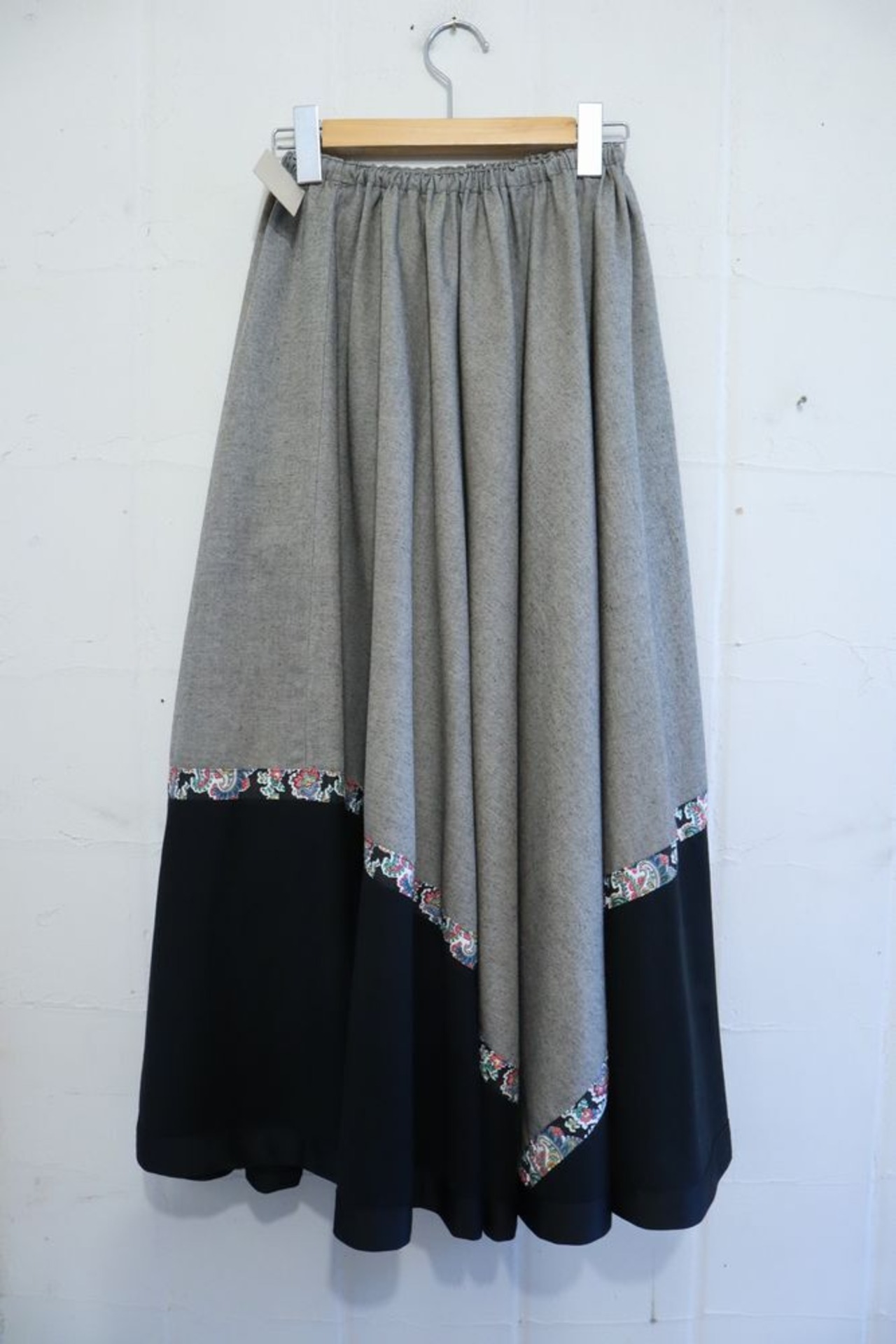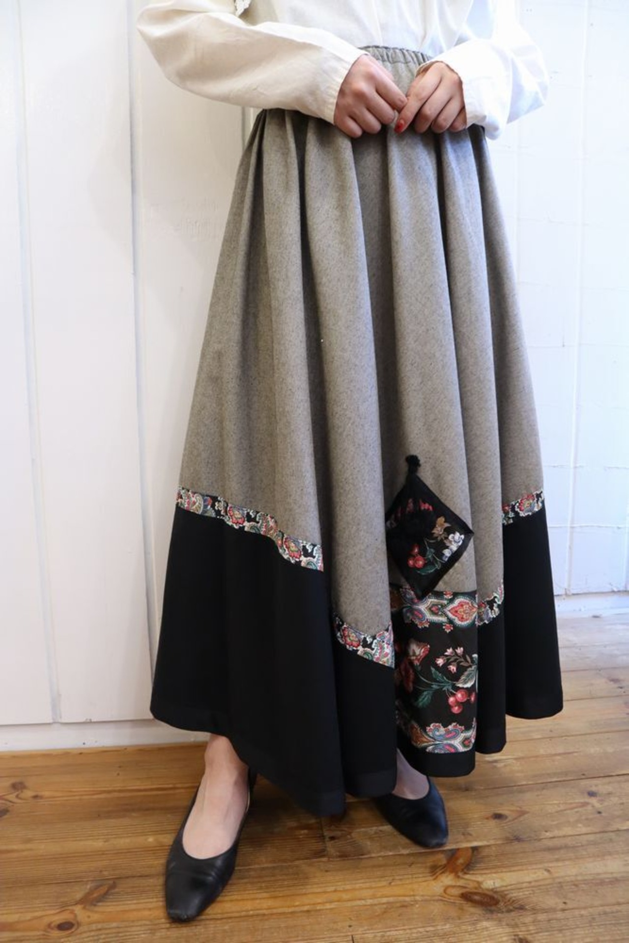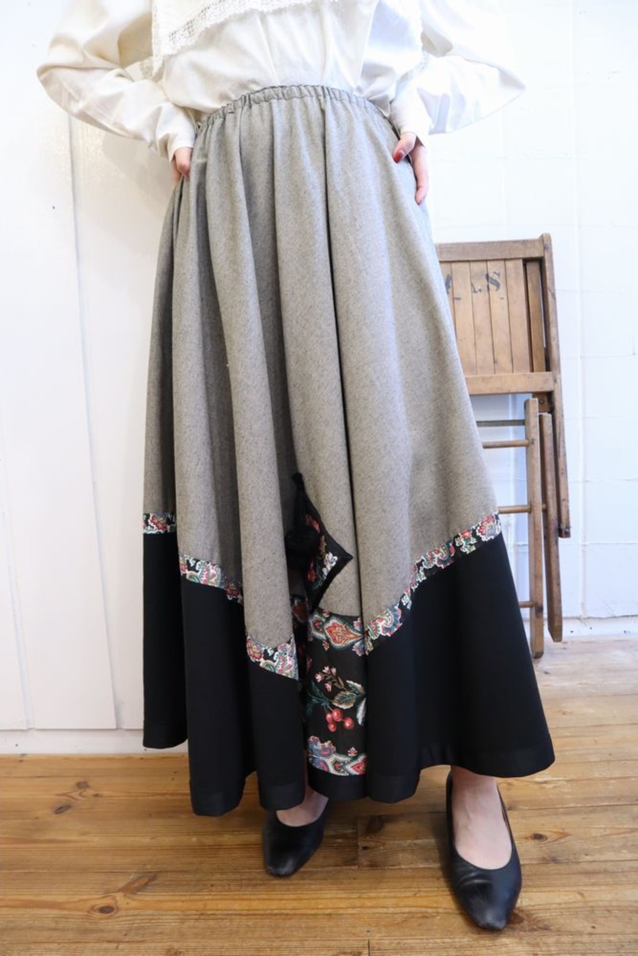 落ち着いたカラーリングに大人な雰囲気のある花柄やペイズリーが素敵なスカートです。