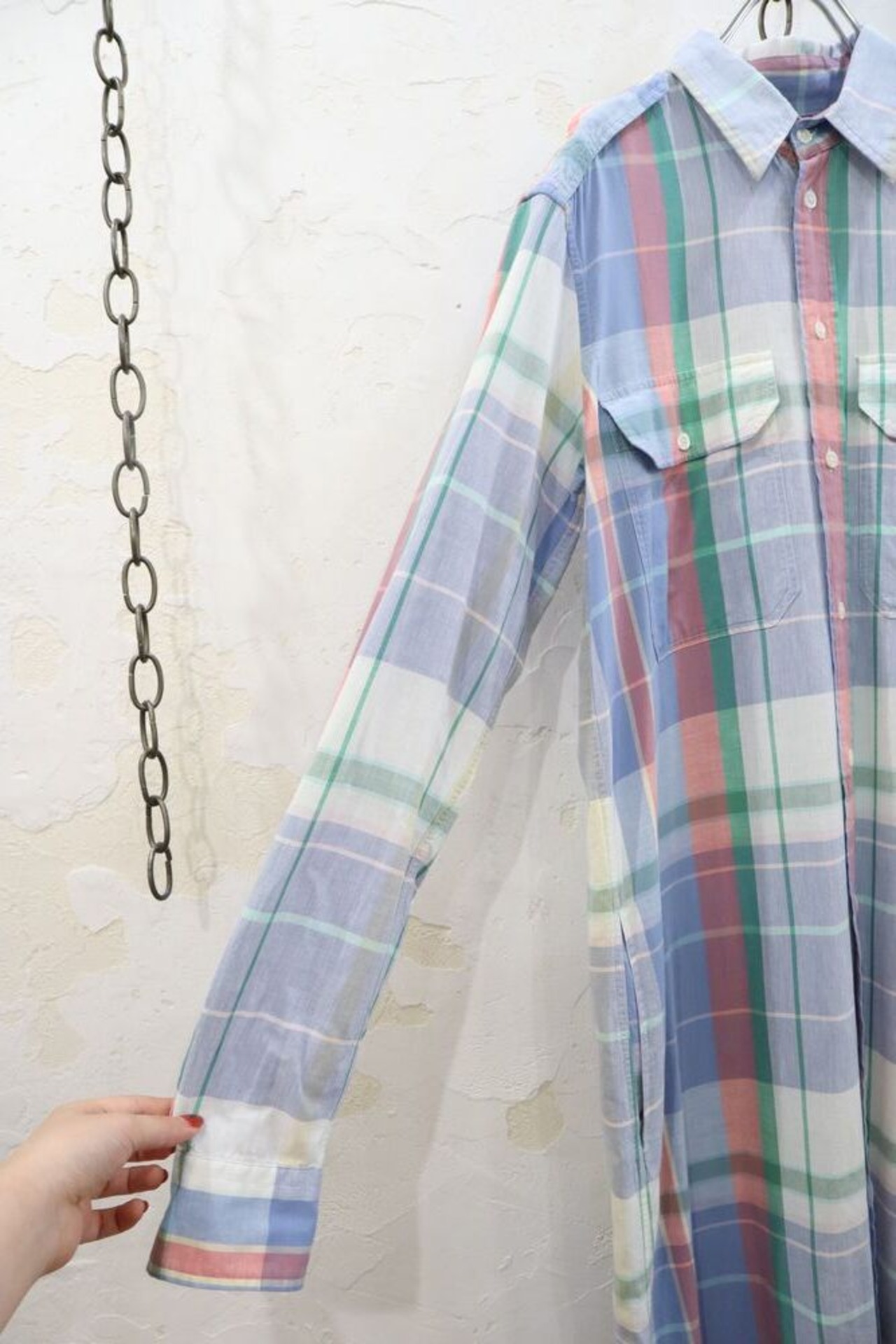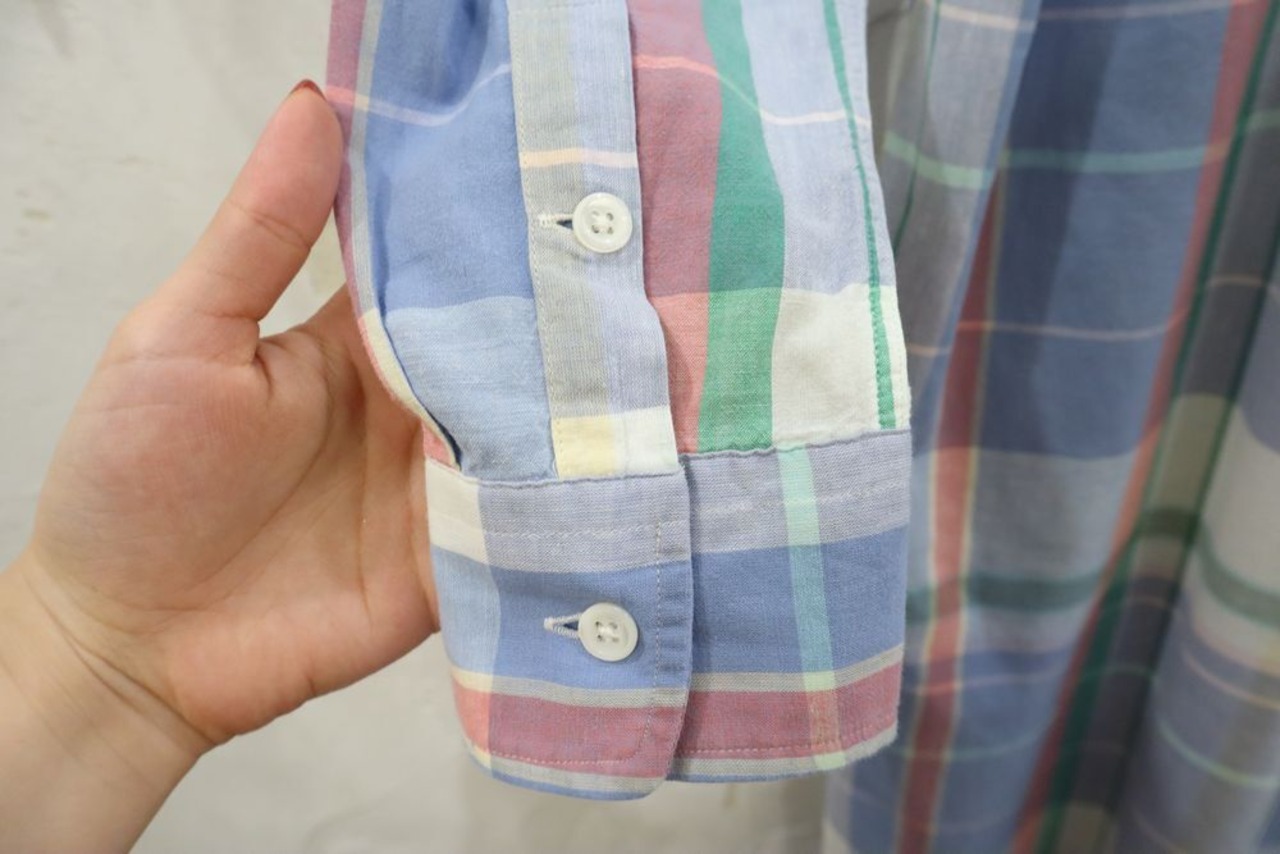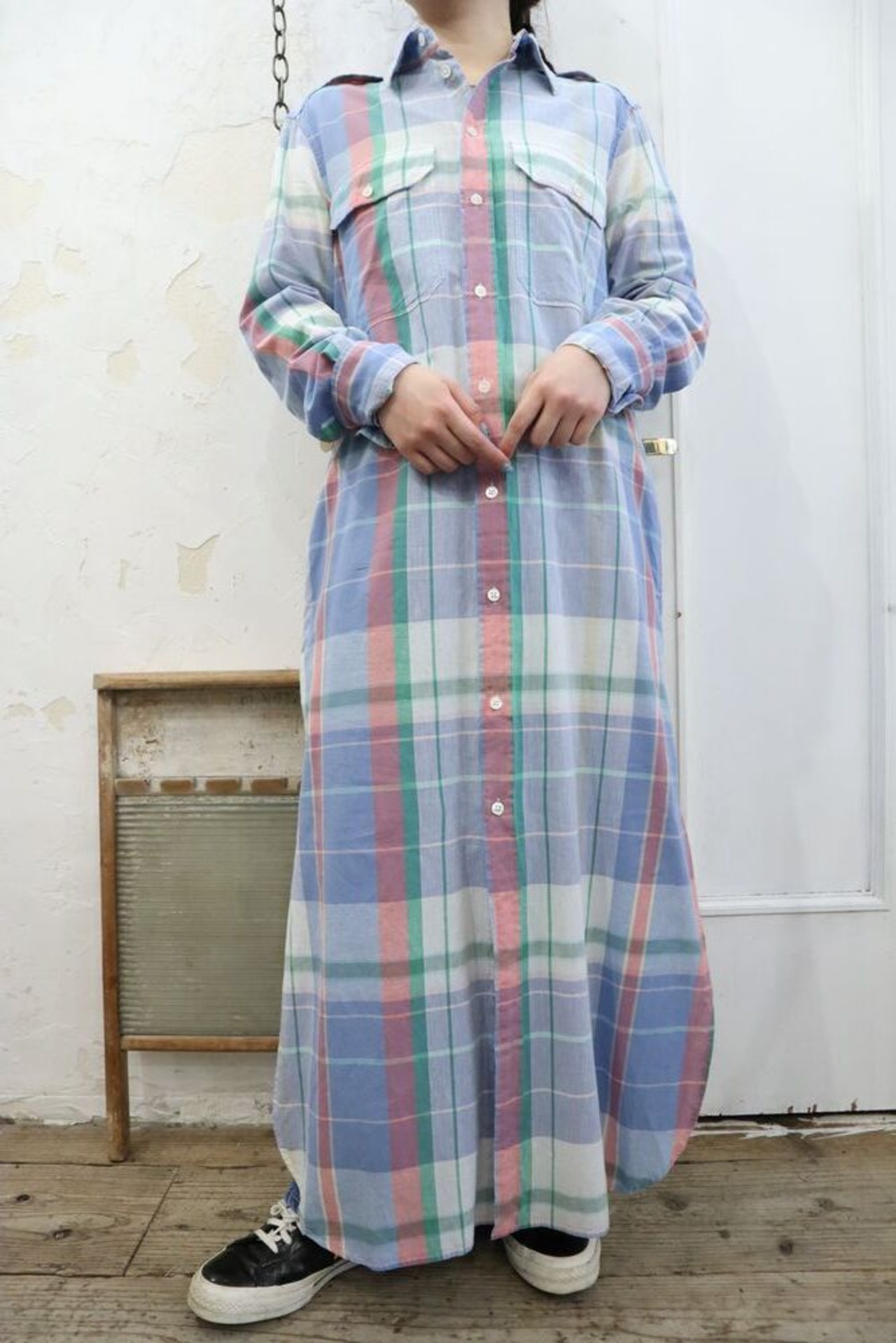 "Ralph Lauren" blue × green × pink plaid shirt dress [k-654]