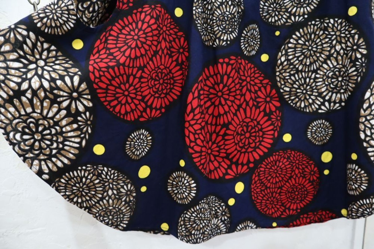 navy × red flower cutwork design african batik tops [k-658]