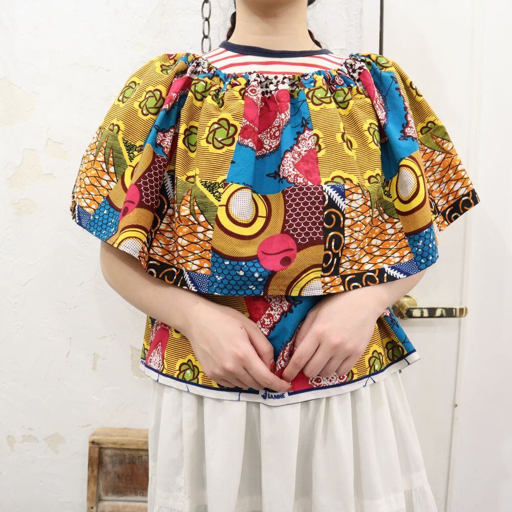 yellow × blue cape collar african batik tops [k-660]
