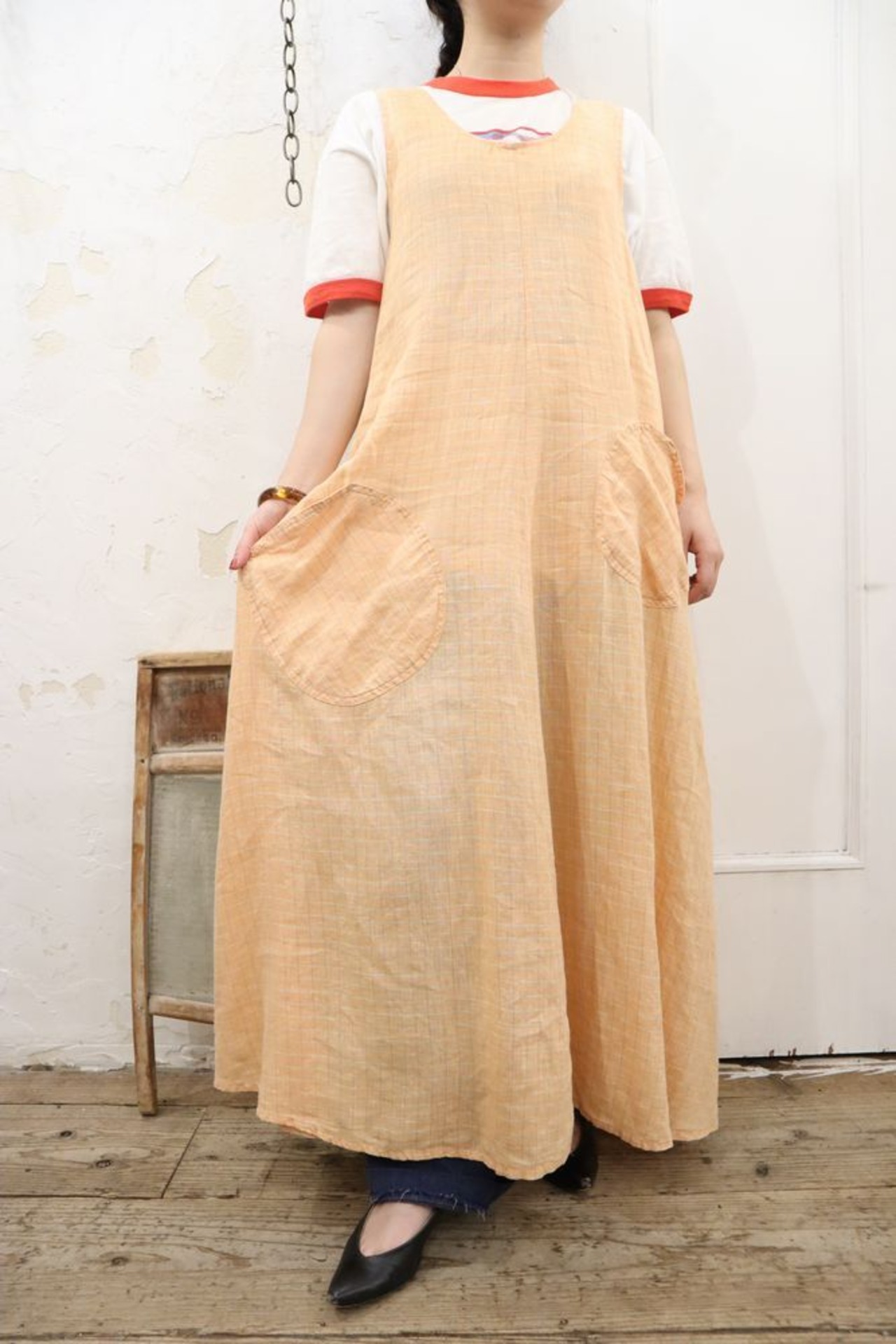 "FLAX" orange pride sleeveless linen dress [k-667]