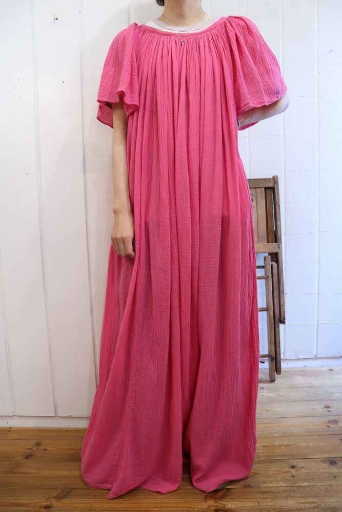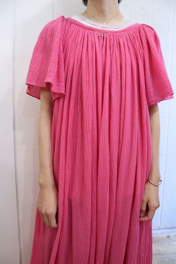 パキっとしたビビットピンクが目を惹くガーゼドレスです♡