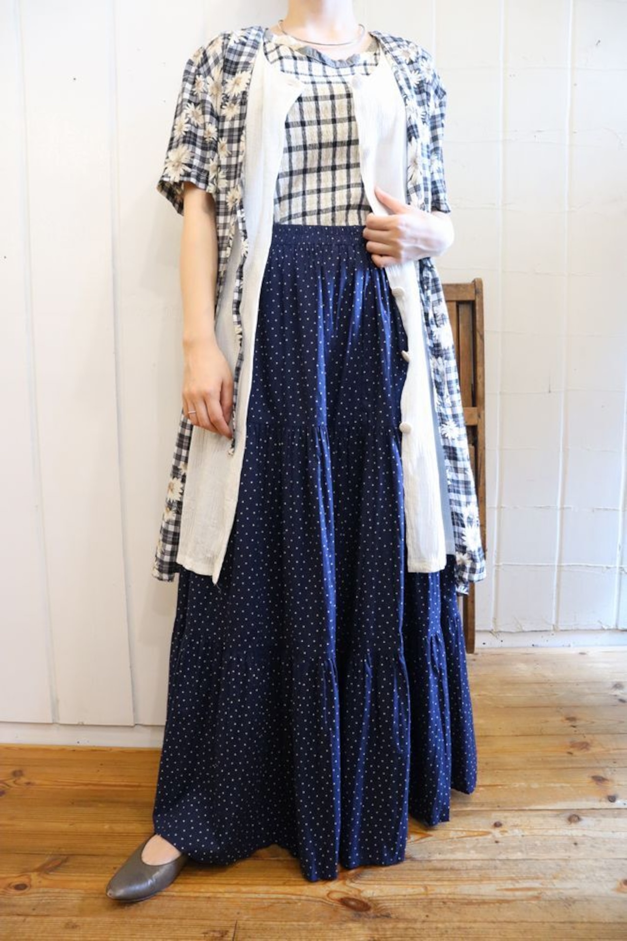 小さな星柄が可愛いティアードスカートです。