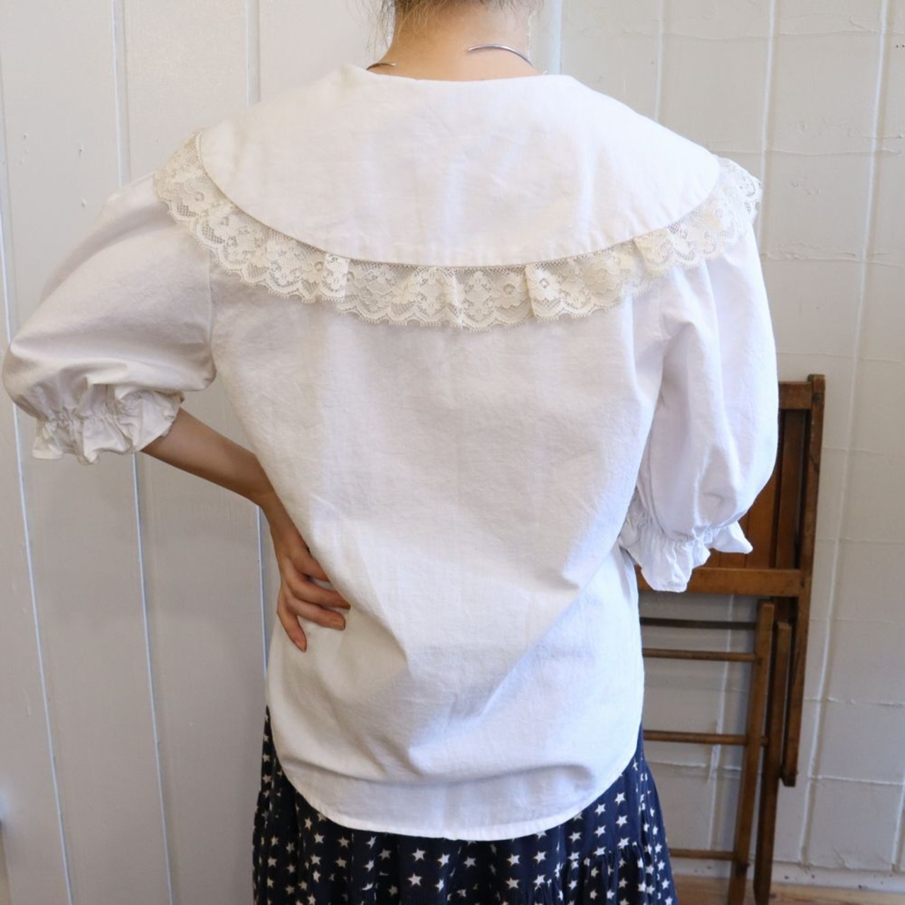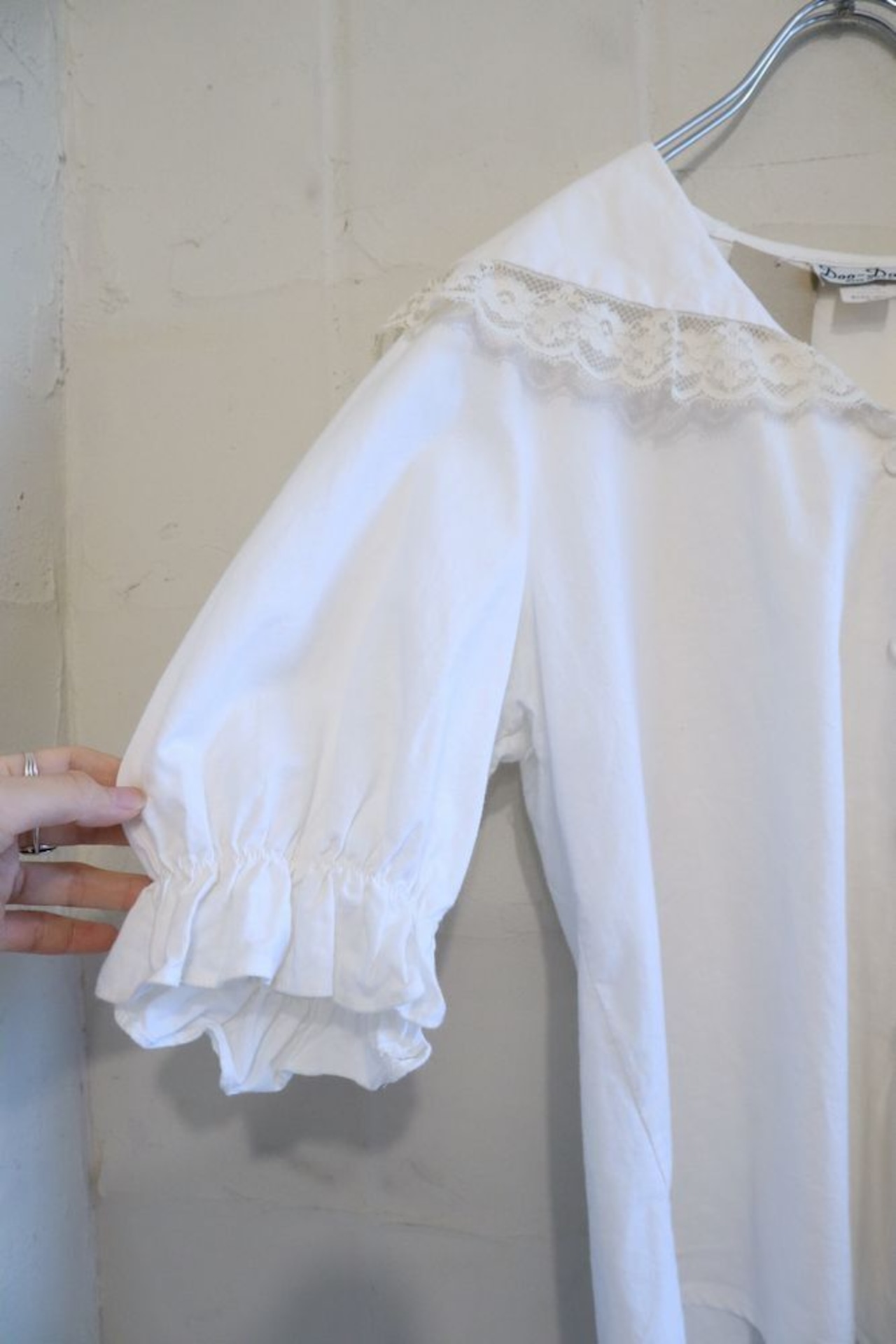 ボタンに汚れ、一部生地の筋やレースに小さな汚れがございますが、あまり気にならない程度かと思われます。