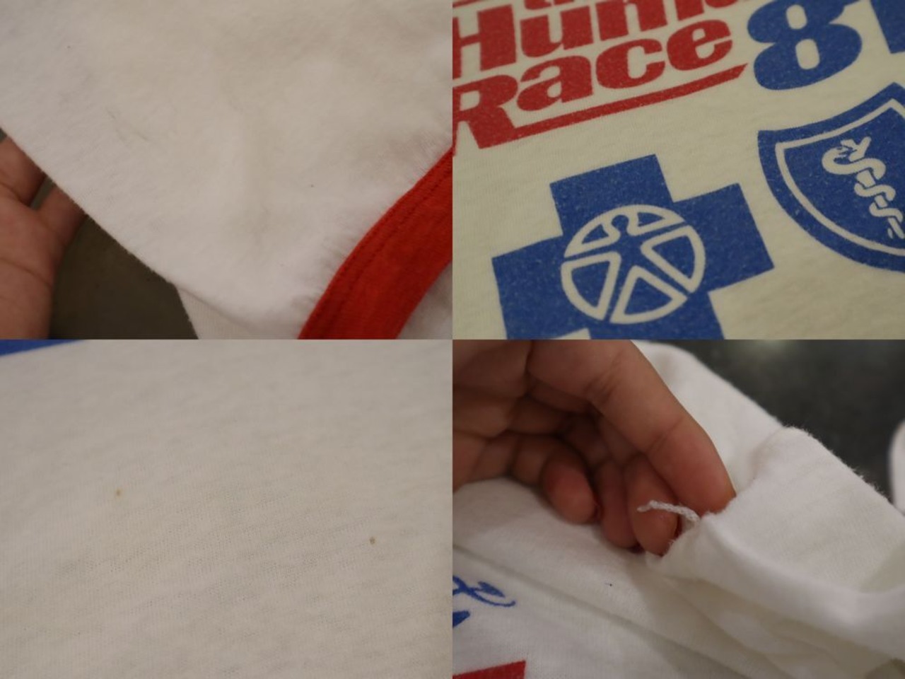 いくつか薄汚れや薄いシミ汚れ、一部生地の毛羽立ちや小さな糸の飛び出しが見受けられますが、古着の味わいとして着て頂けるかと思われます。