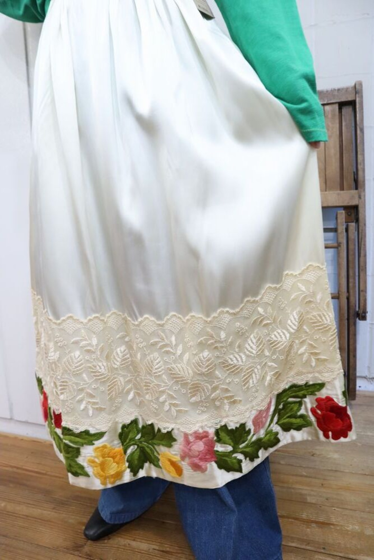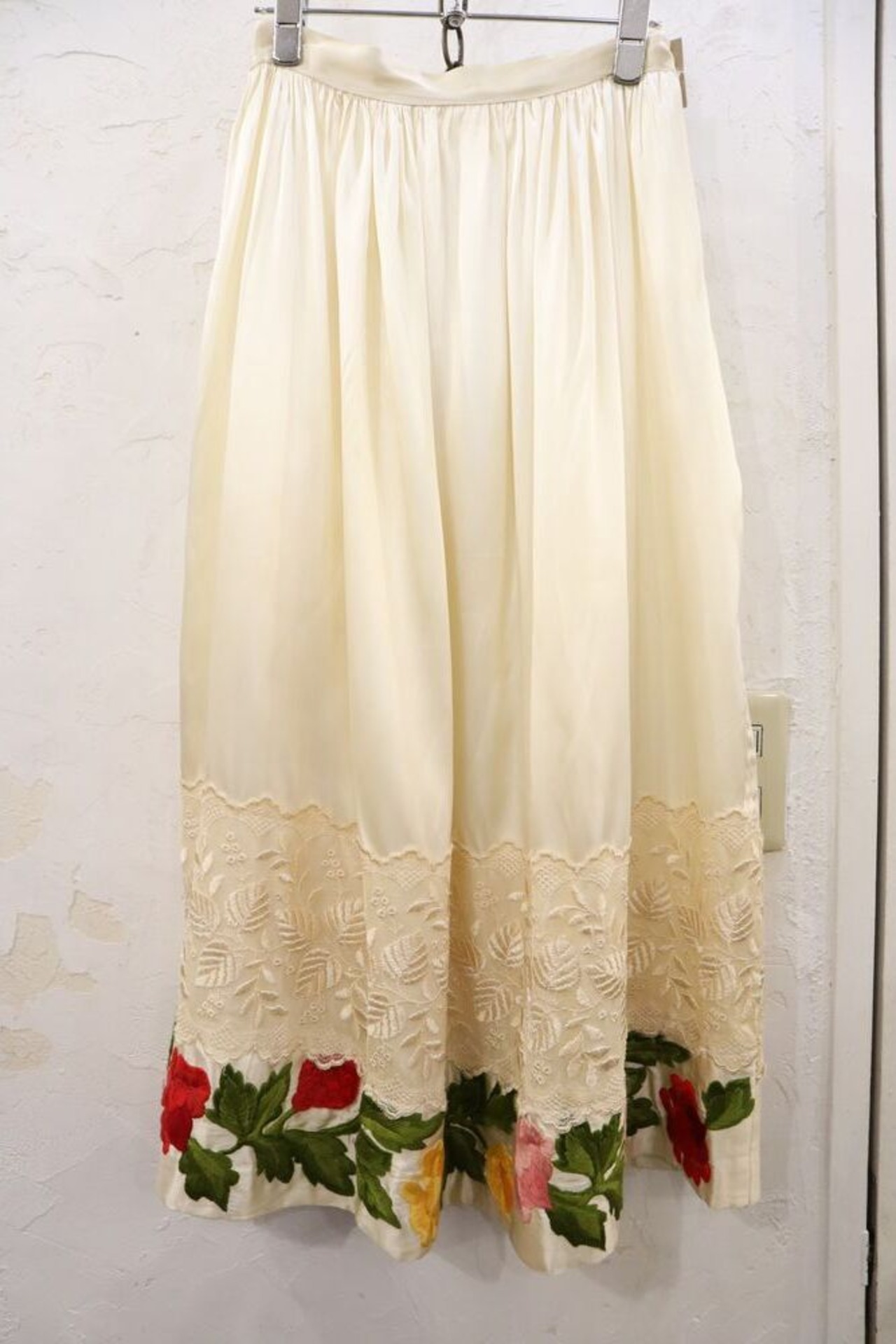 50s off white × colorful lace & flower embroidery skirt [l-686]