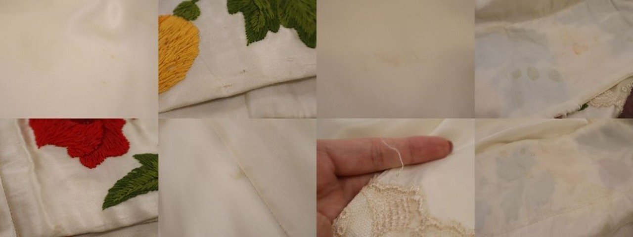 またいくつか生地のツレや刺繍部分の糸の飛び出し、小さな傷がございますが、着用に問題ございません。