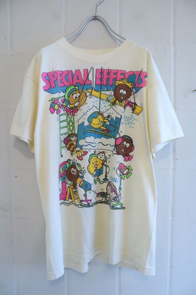 made in USA 90s ivory × pink cookie character print T-shirt [l-689]