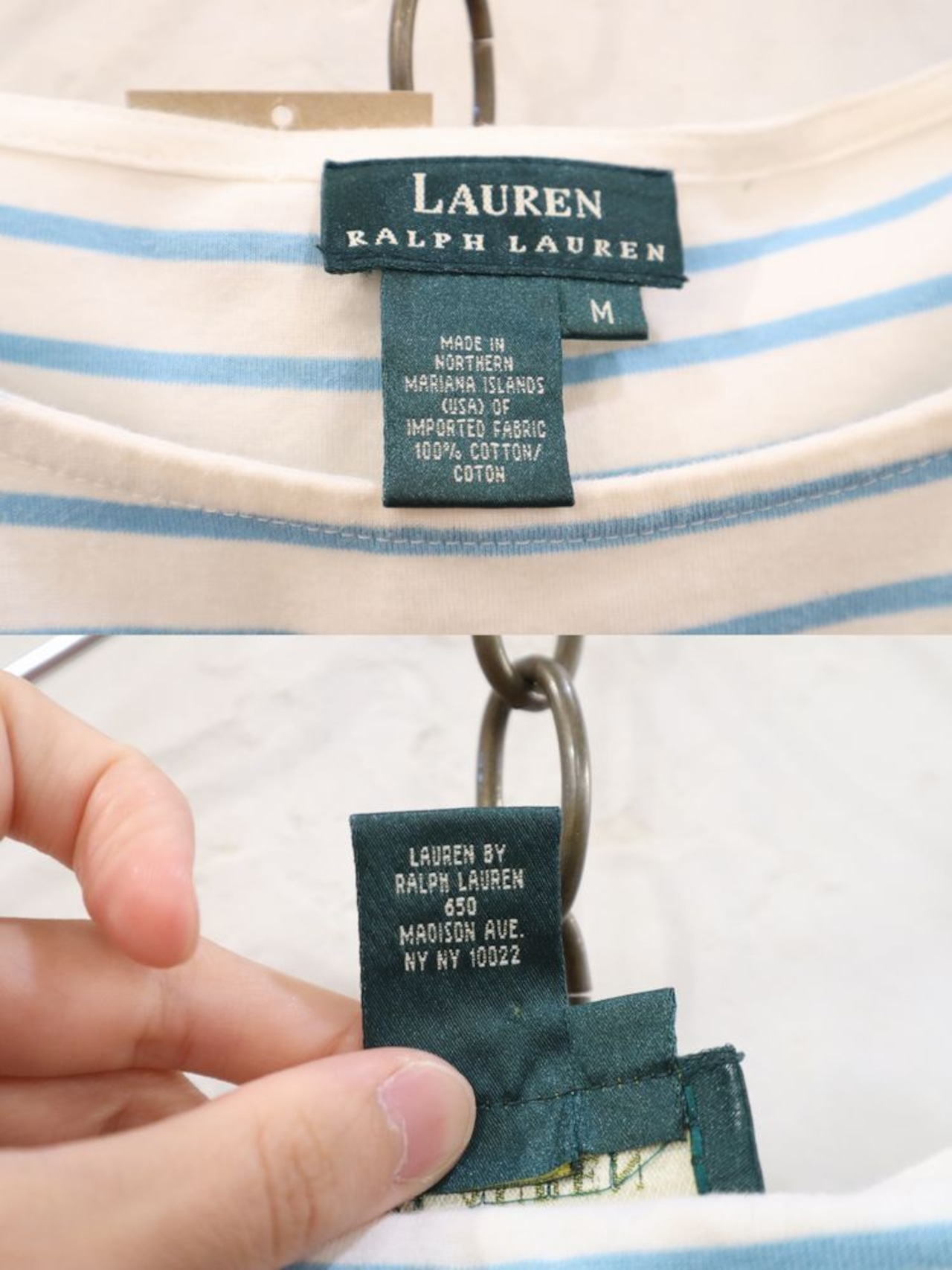 "Ralph Lauren" white × light blue sleeveless tops [k-702]