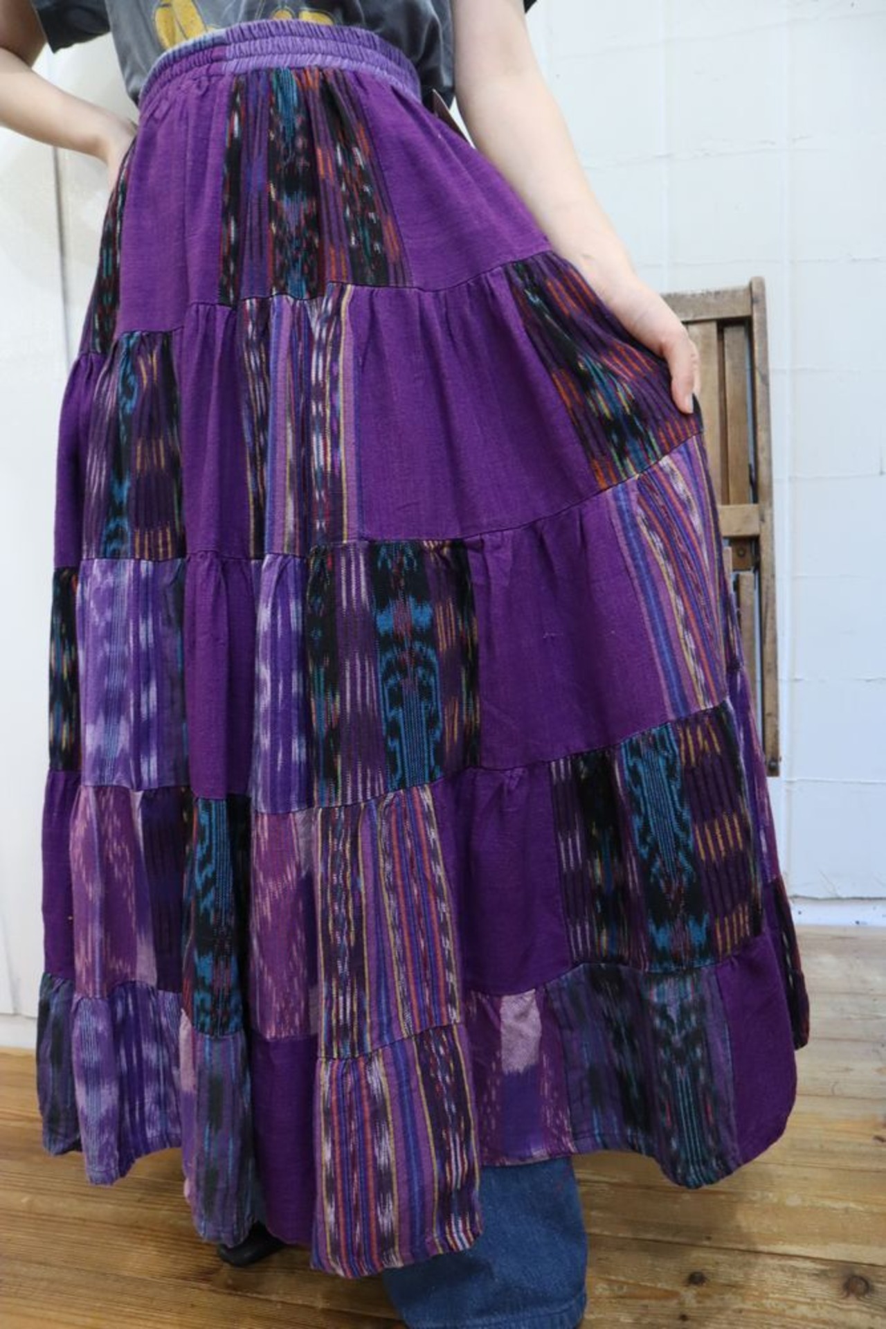 purple×colorful guatemala tiered skirt [l-710]