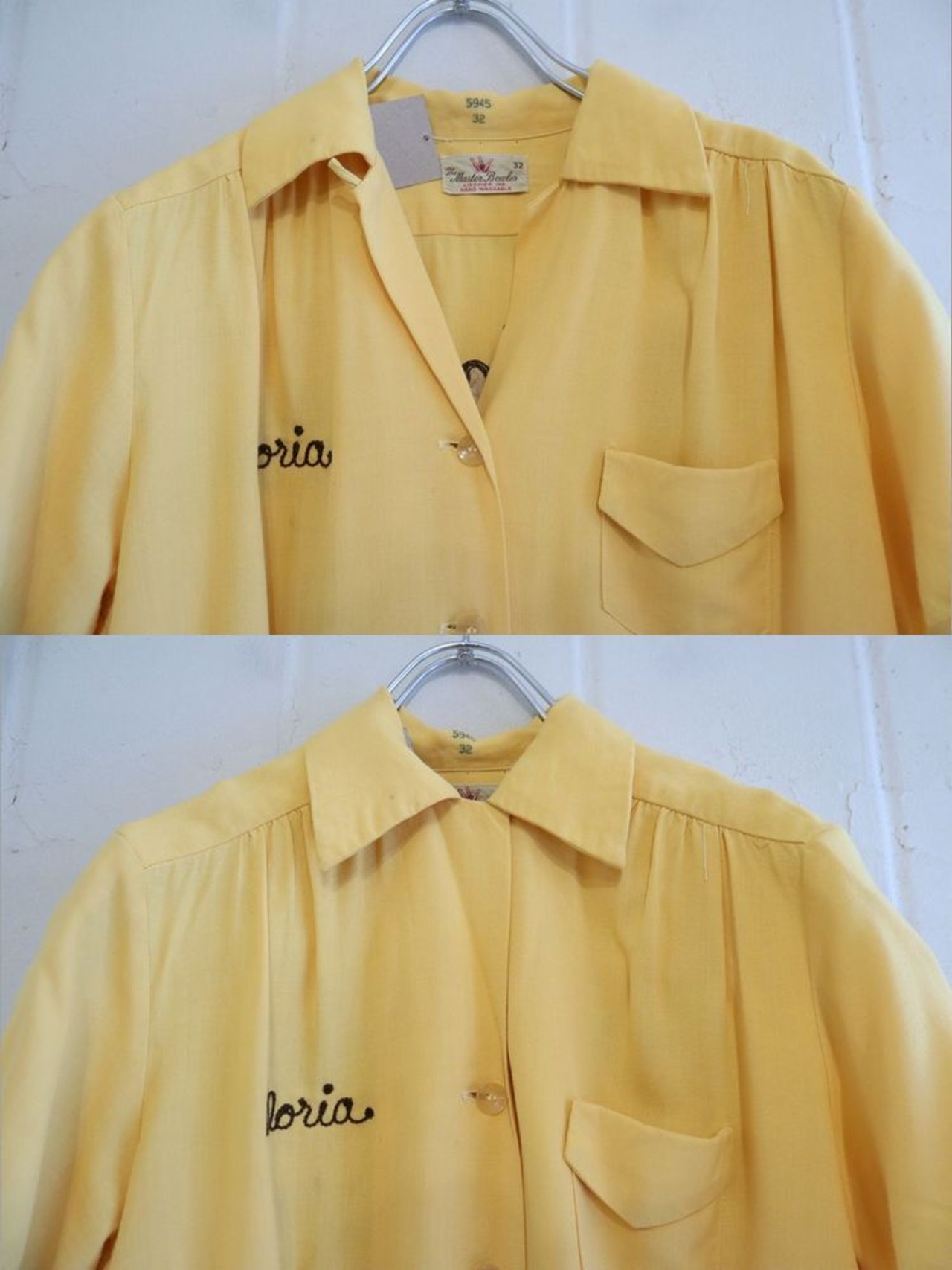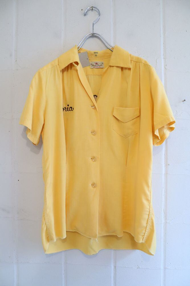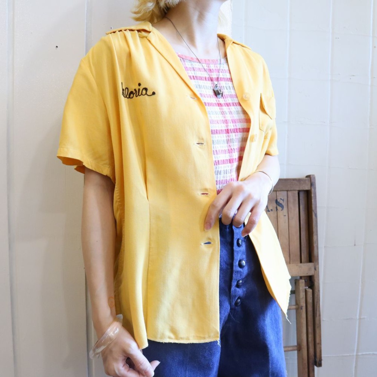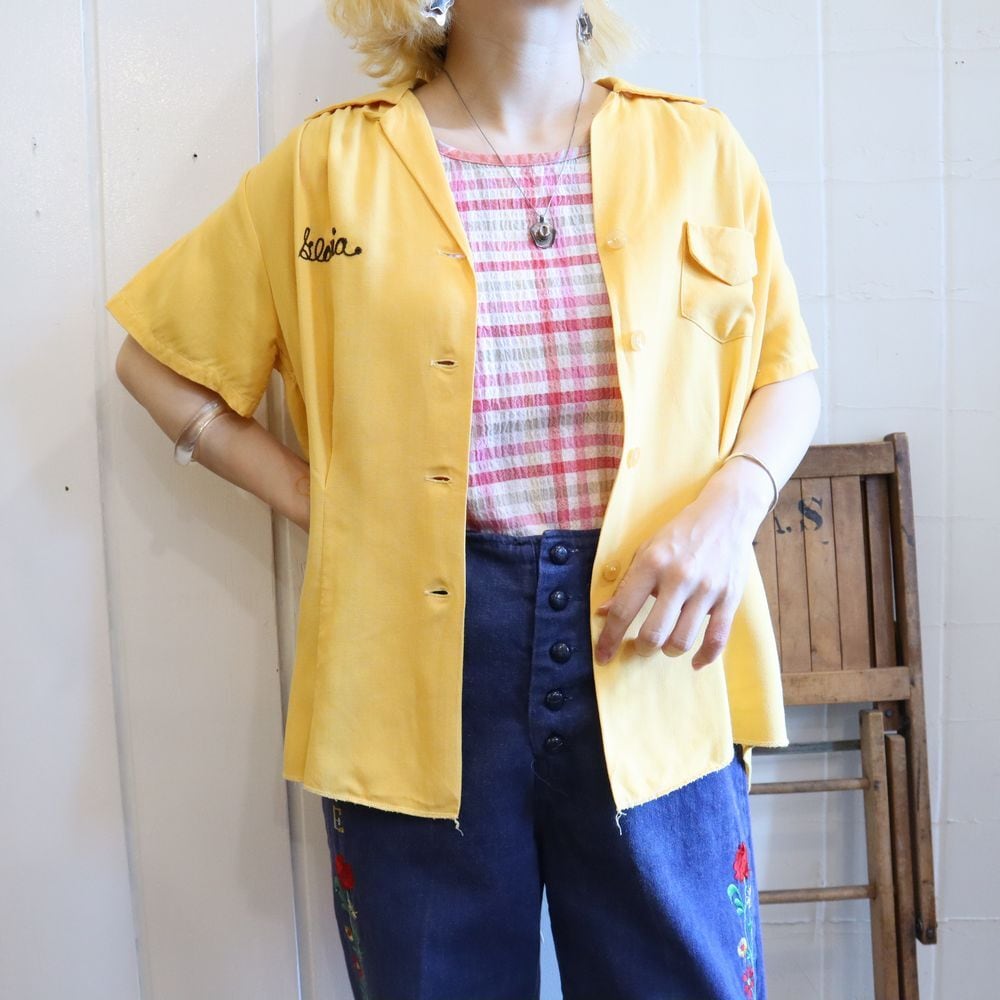 50-60s yellow×brown chain stitch bowling shirt [l-714]