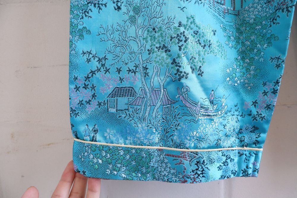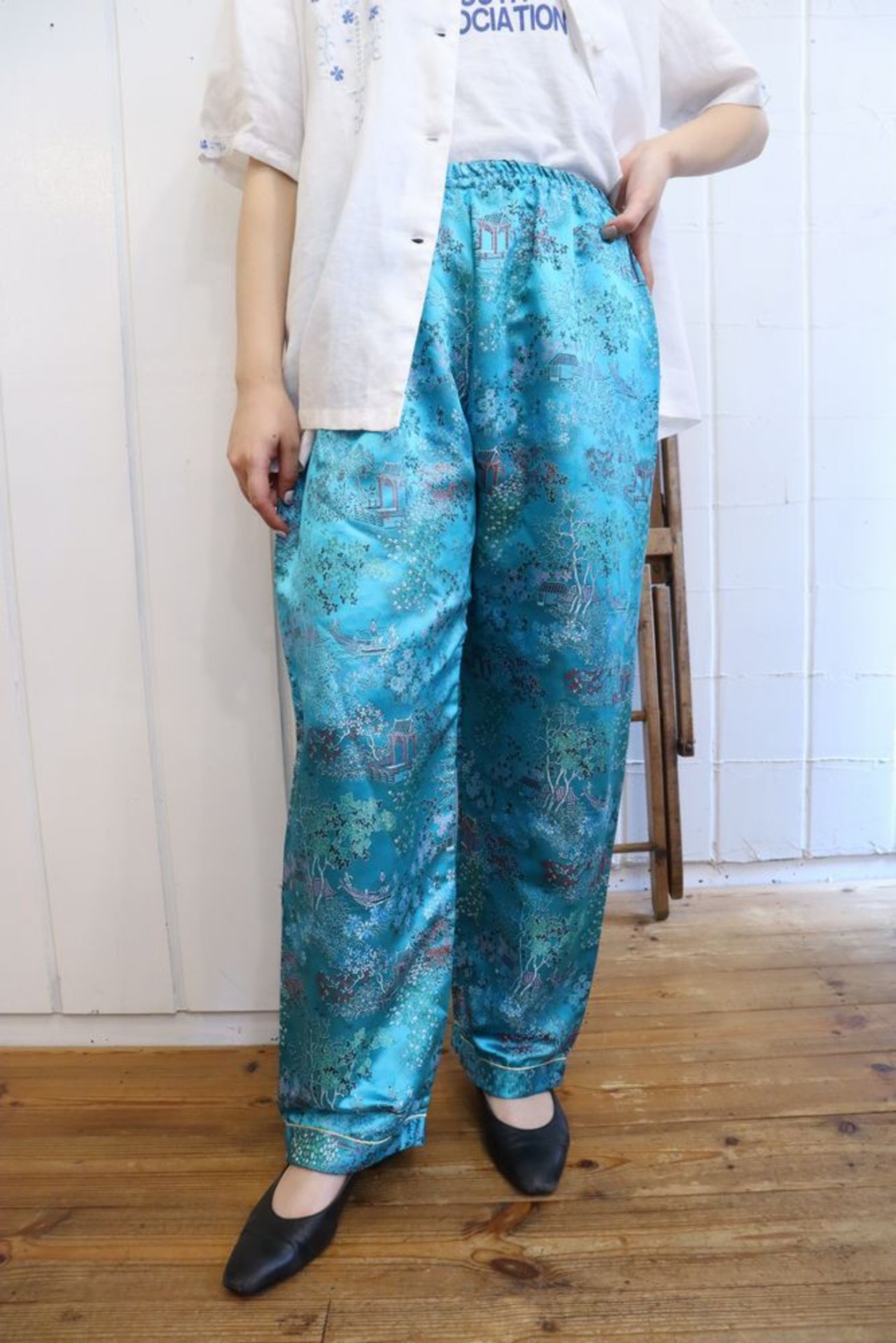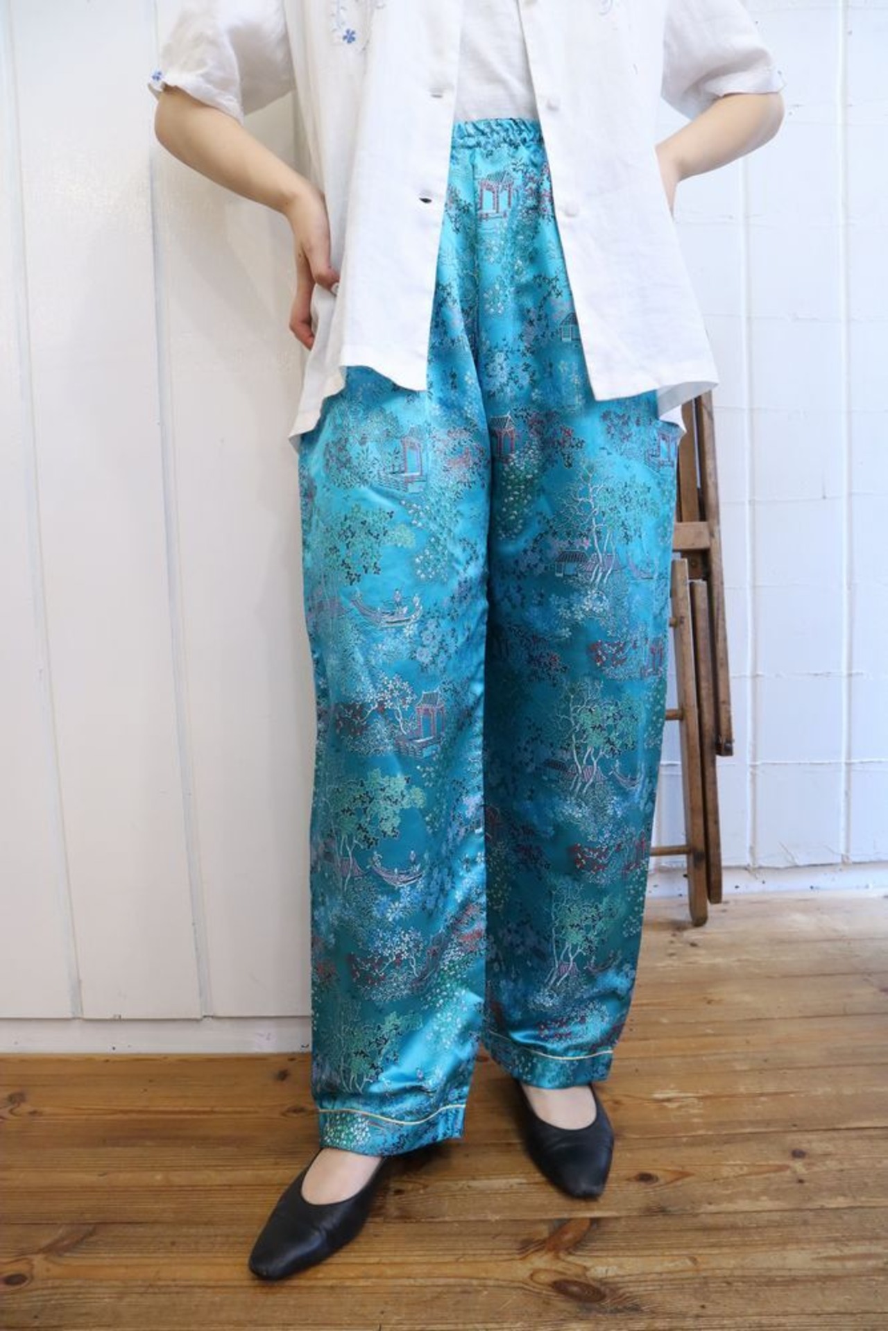 光沢感のある刺繡が素敵なチャイナパンツです。