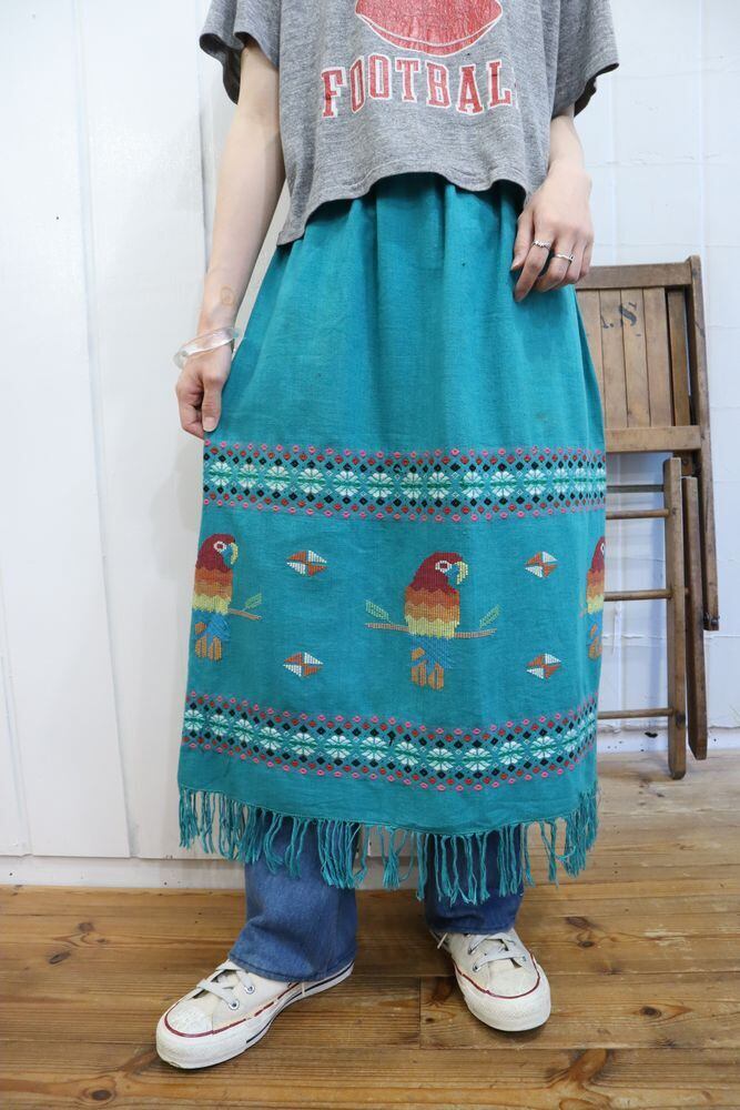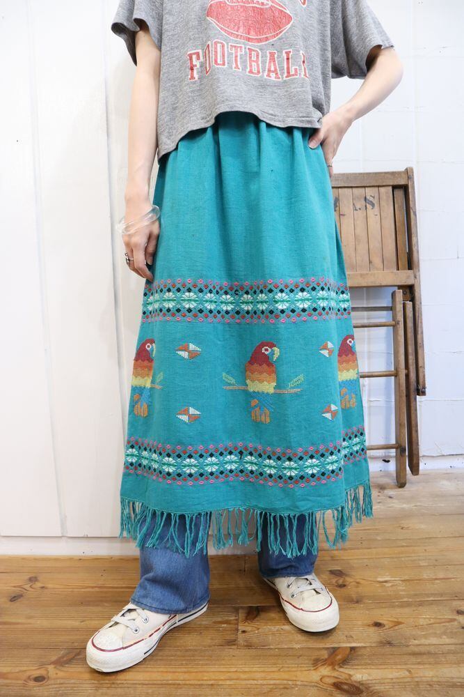 bluegreen×red Guatemal embroidery fringe skirt [l-757]