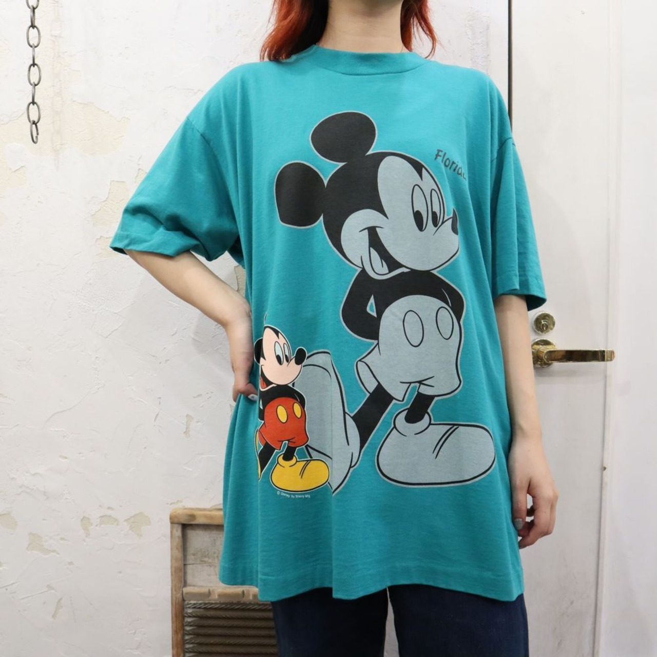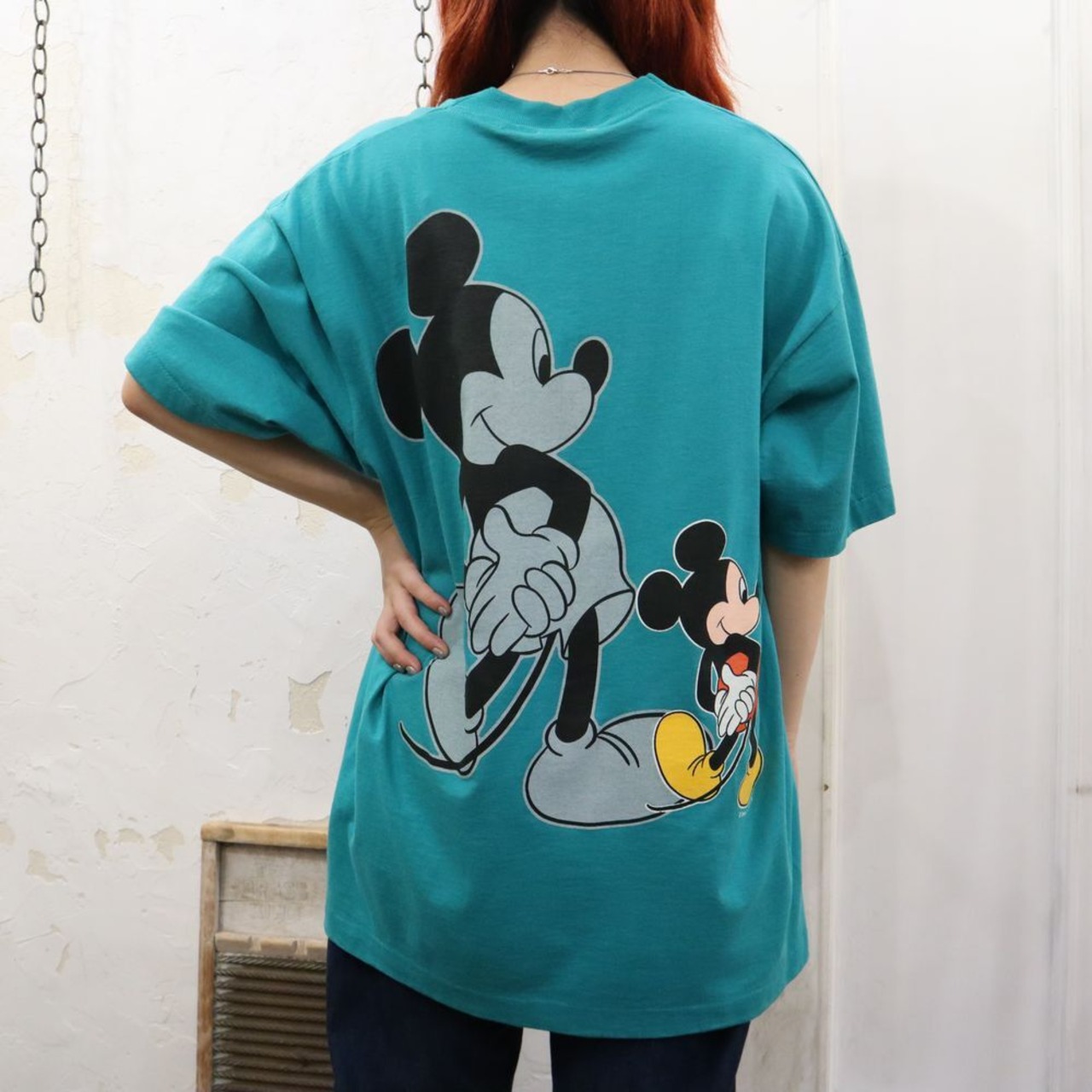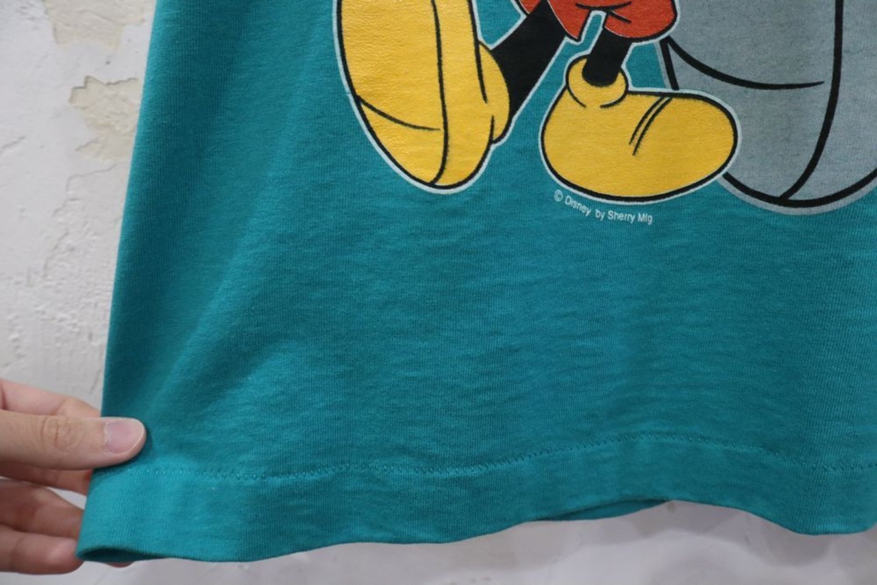 90s green×black×gray character print T-shirt [k-765]