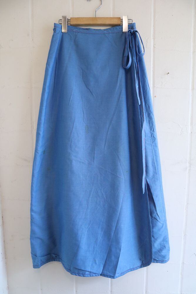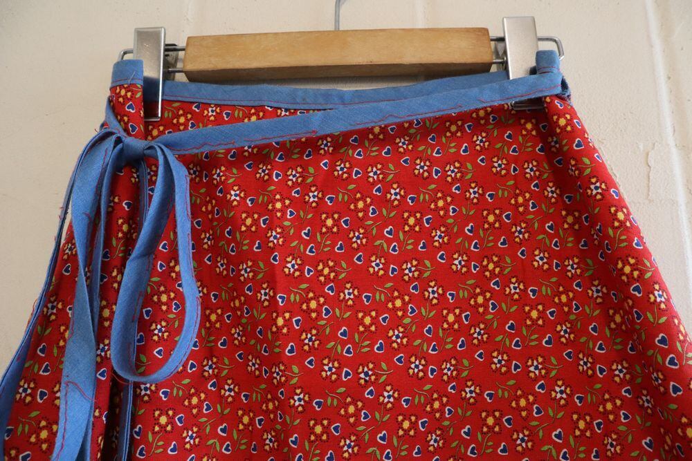 70s red×blue×colorful flower pattern reversible wrap skirt [l-767]