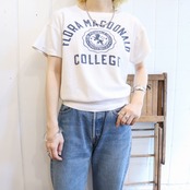 50-60s white×navy college print short sleeve pile T-shirt [l-769]