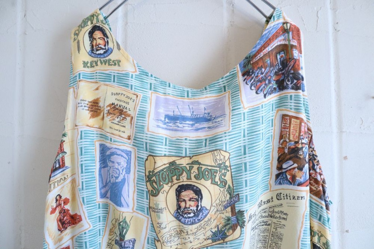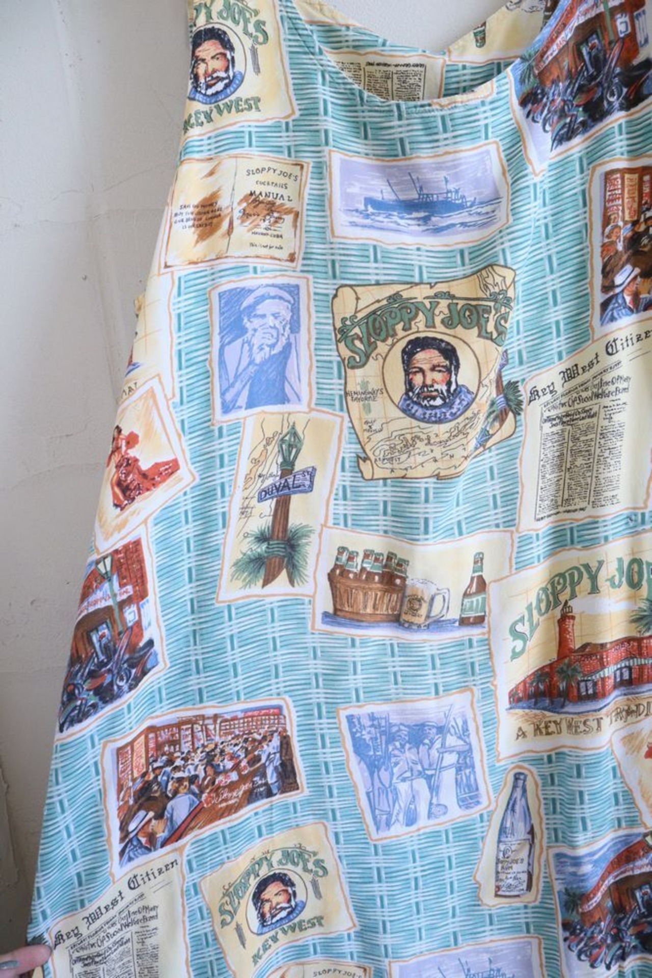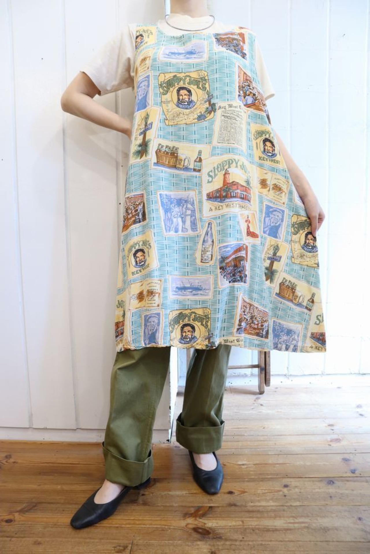 green×yellowbeige human & scenery pattern Hawaiian dress [l-777]
