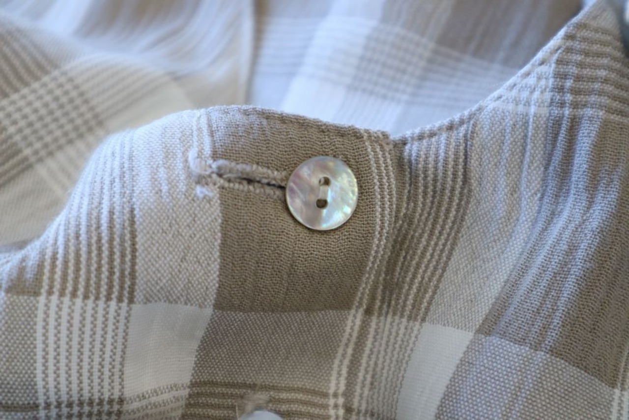 ゆったり広がるシルエットとシェルボタンのキラキラ感がとっても可愛い一枚♡