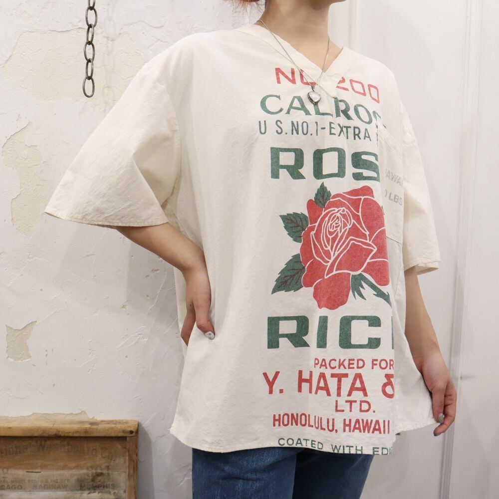 バラのプリントが可愛いフィードサックトップスです。